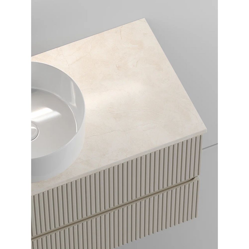Подвесная тумба размером 99,5x44,5x50 см изготовлена из надежного МДФ, обеспечивая прочность и долговечность изделия. В комплект входит раковина Ceramicanova Element CN6032, выполненная из итальянского фаянса, с габаритами 35,8x35,8 см. Ее минималистичный дизайн гармонично встроится в обстановку. Столешница из керамогранита, без готовых отверстий под смеситель, размером 100x46x2,1 см, имеет стильный бежевый цвет, что придает мебели законченный вид.