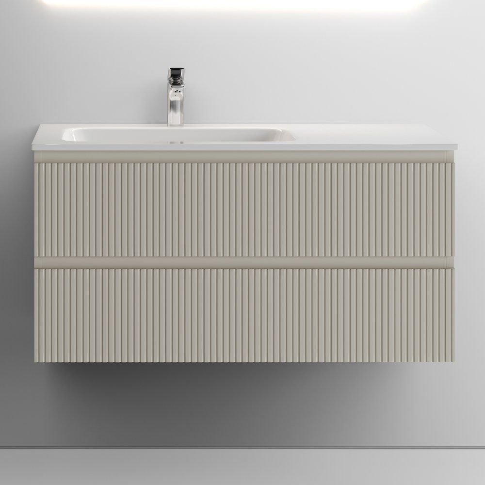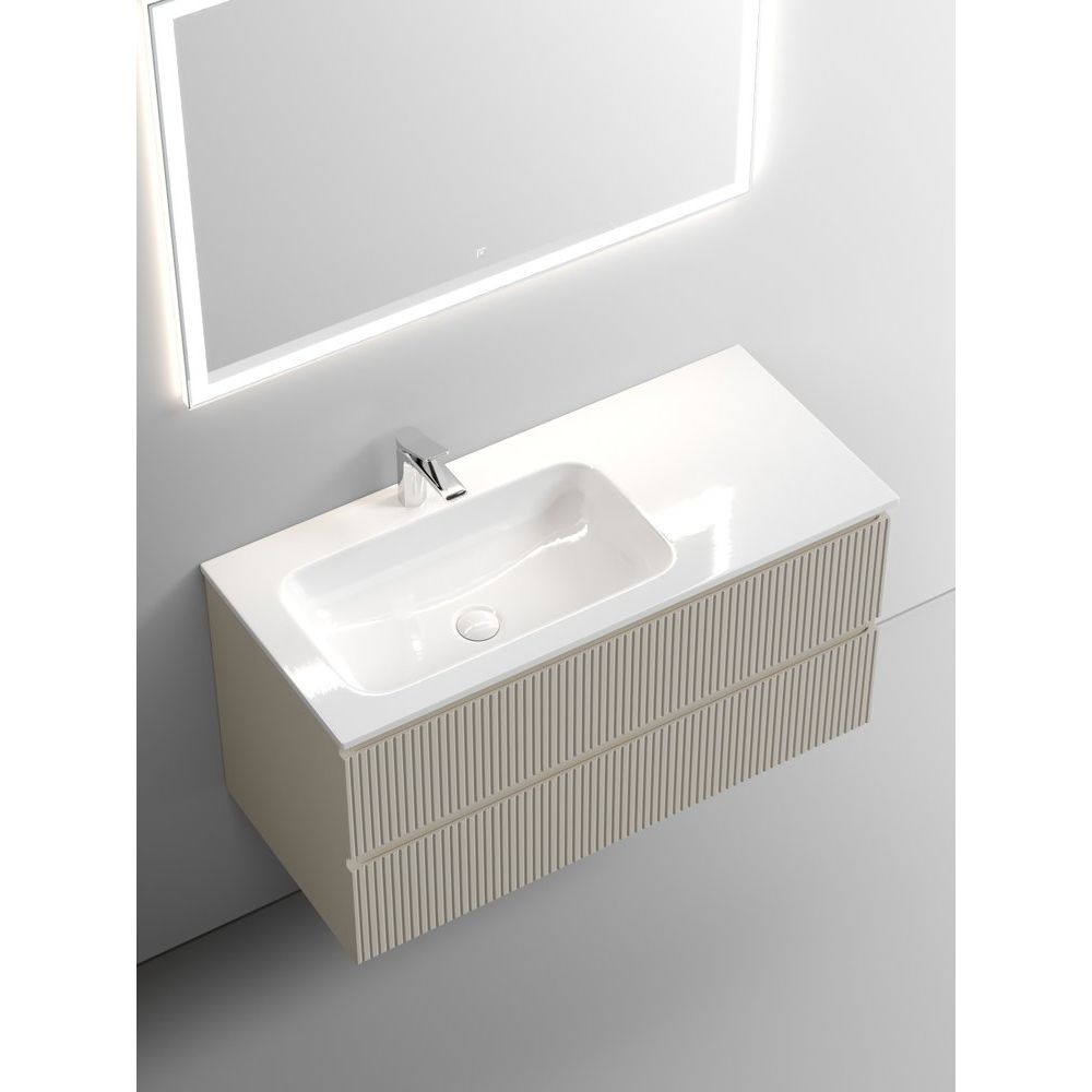 Тумба из коллекции Sancos Snob T выполнена в габаритах 99,5x44,5x50 см. Это подвесная конструкция, оборудованная ящиками с механизмом доводчика для плавного и бесшумного закрывания. Корпус и фасад изготовлены из МДФ и покрыты пленкой, что обеспечивает защищенность и простоту в уходе. Раковина Ceramicanova Element CN7014 имеет размеры 101x45,7 см, выполнена из прочного итальянского фаянса и подходит для сифона диаметром 3,2 см. Учтите, что донный клапан потребуется приобрести отдельно. Комплектируется раковина одним отверстием для удобного монтажа смесителя.