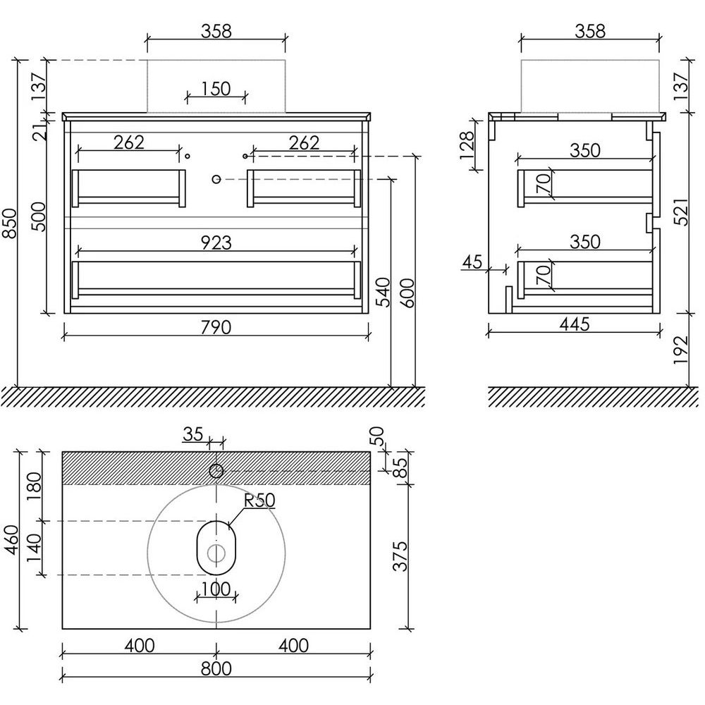 При выборе сифона для тумбы с раковиной обратите внимание на конструктивные особенности и подбирайте его индивидуально, учитывая параметры изделий. Помните, что столешница поставляется без отверстий под смеситель, что предоставляет вам свободу выбора. Раковина требует отдельной покупки донного клапана, который не входит в комплект.