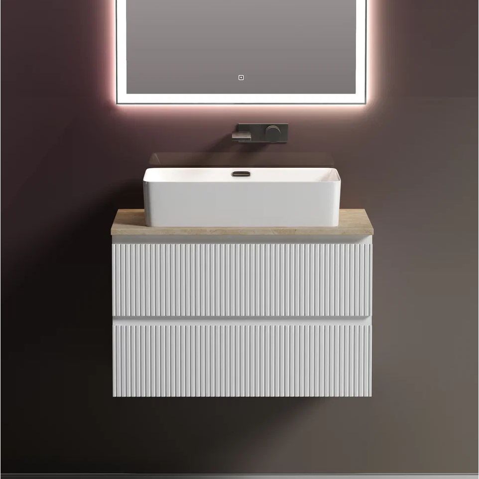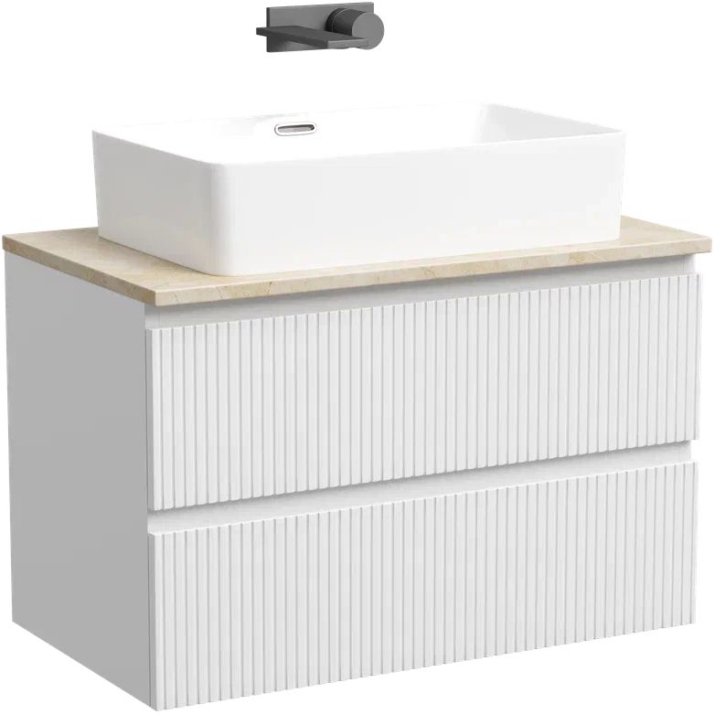 Тумба Sancos Snob T 80, bianco имеет размеры 79x44,5x50 см и подвешивается на стену. Она изготовлена из МДФ с пленочным покрытием, что защищает от влаги и повреждений. Ящики оснащены механизмом доводчика для плавного закрывания. Гарантия на изделие — 2 года. Раковина Ceramicanova Element CN5025, выполненная из фаянса, имеет размеры 60x38 см и поставляется со встроенным сливом-переливом. Итальянское качество подтверждается 10-летней гарантией. Столешница из керамогранита, цвет бежевый, с габаритами 80x46x2.1 см, предлагается без кронштейнов и отверстий для смесителя.