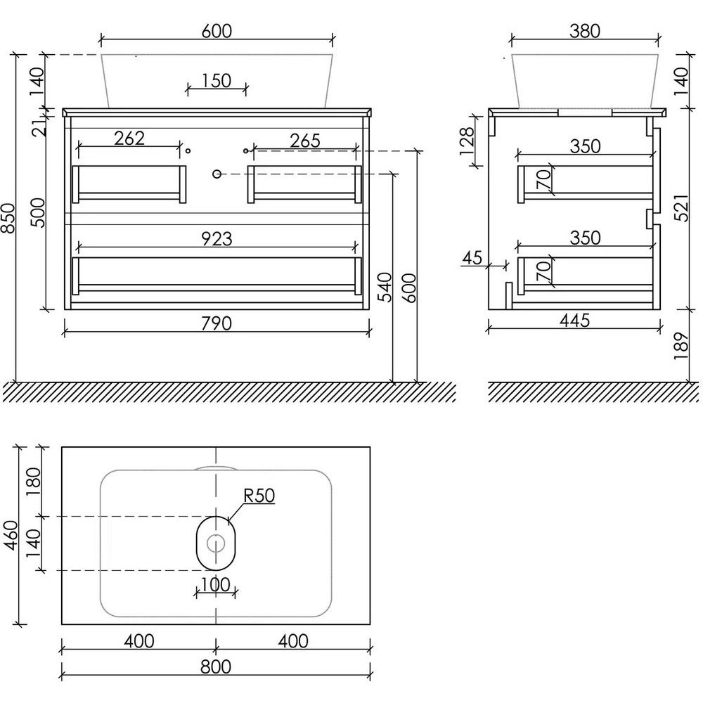 При выборе сифона обратите внимание на особенности конструкции тумбы и подберите подходящий для ее параметров. Также следует учитывать, что столешница и умывальник не имеют готовых отверстий под смеситель, поэтому их потребуется сделать самостоятельно при установке.