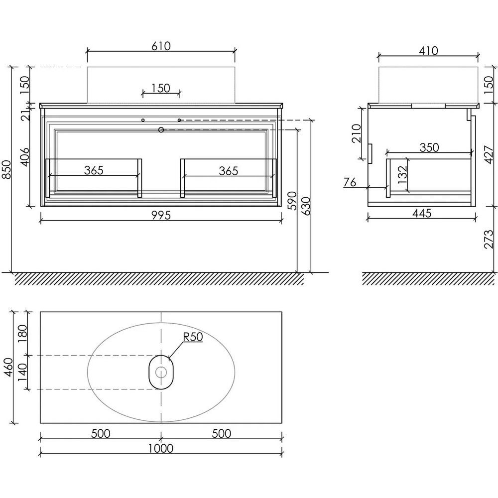 Тумба из МДФ с пленочным покрытием предназначена для подвесного монтажа и характеризуется размерами 99,5x44,5x37,5 см. Она оснащена механизмом плавного закрывания ящиков. Раковина Ceramicanova Element CN5018, изготовленная из фаянса, имеет габариты 61x41 см и требует сифона диаметром 3.2 см. Столешница из керамогранита в цвете черный мрамор, без готовых отверстий под смеситель, представлена в размерах 100x46x2.1 см.