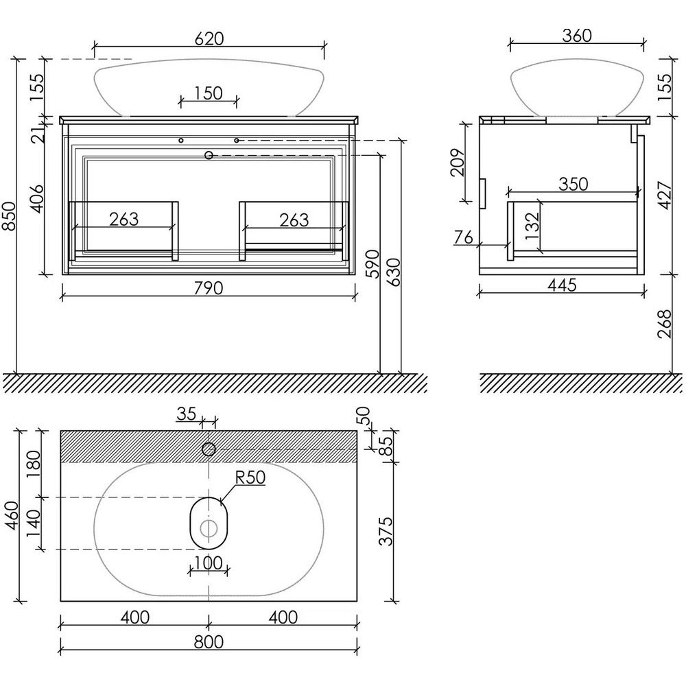 Мебель в комплекте поставляется в собранном виде, что экономит время и силы на установку. Обратите внимание на то, что столешница требует установки раковины и не имеет отверстий под смеситель — это значит, что ее можно настроить в соответствии с вашими предпочтениями. Выбирая сифон, учитывайте особенности конструкции и параметры вашей раковины. Гарантия на мебель от производителя составляет 2 года, а на раковину — целых 10 лет.
