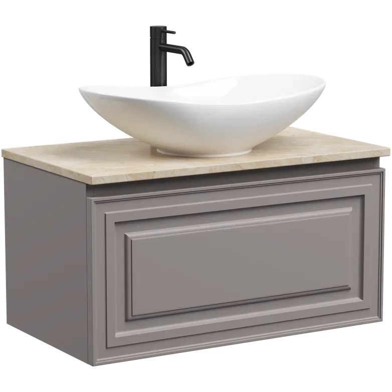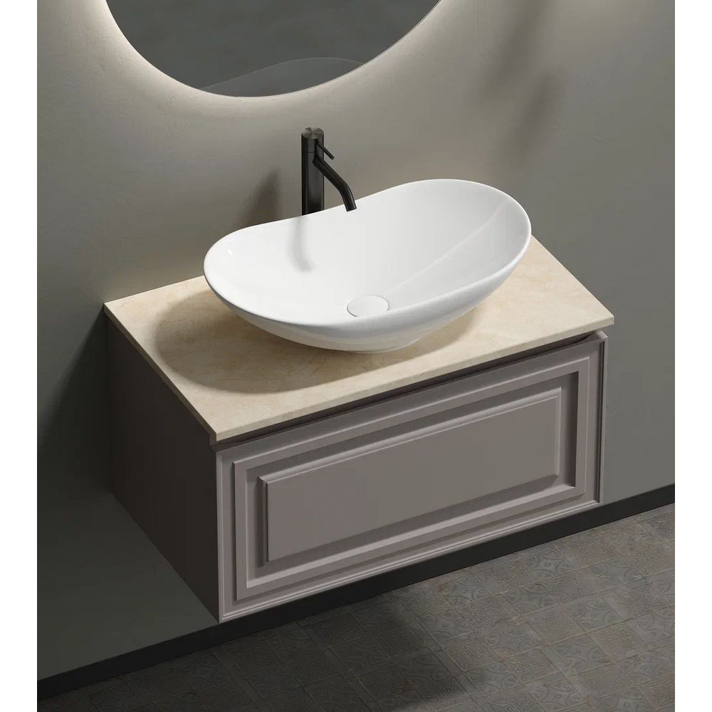 Тумба коллекции Sancos Very 80 имеет габариты 79x44,5x37,5 см и выполнена из МДФ с пленочным покрытием. Механизм доводчика обеспечит плавное закрывание ящиков. Тумба подвесная, что добавляет визуальную легкость и упрощает уборку. Раковина Ceramicanova Element CN6015 размером 61,5x36 см изготовлена из фаянса, имеющего отверстие для сифона диаметром 3.2 см и требует приобретения донного клапана отдельно. Столешница из бежевого керамогранита имеет размеры 80x46x2.1 см и поставляется без отверстий под смеситель, что позволяет адаптировать её под индивидуальные потребности.