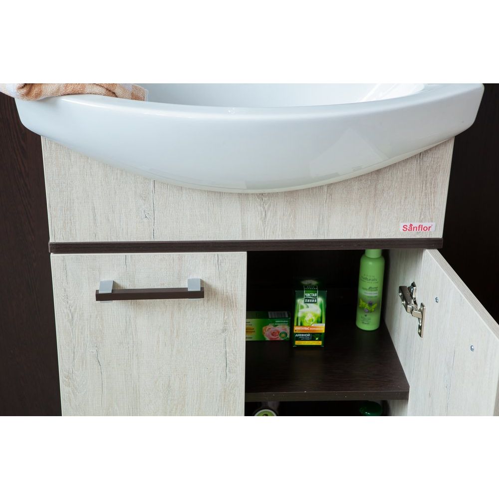 Elegant и практичное решение для вашей ванной комнаты — тумба с раковиной Sanflor Толедо 60 в эффектных цветах венге и орегон. Эта стильная меблировка идеально вписывается в современные интерьеры, сочетая в себе функциональность и современный дизайн. Изящное покрытие из ЛДСП с хромированной фурнитурой обеспечивает долговечность и устойчивость конструкции, что делает её идеальным выбором для каждого дома.