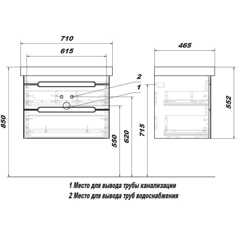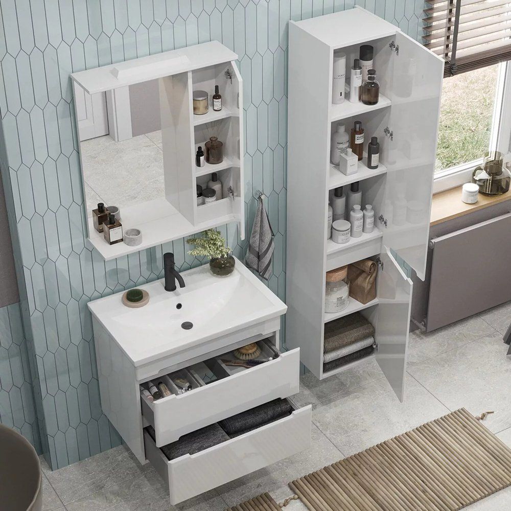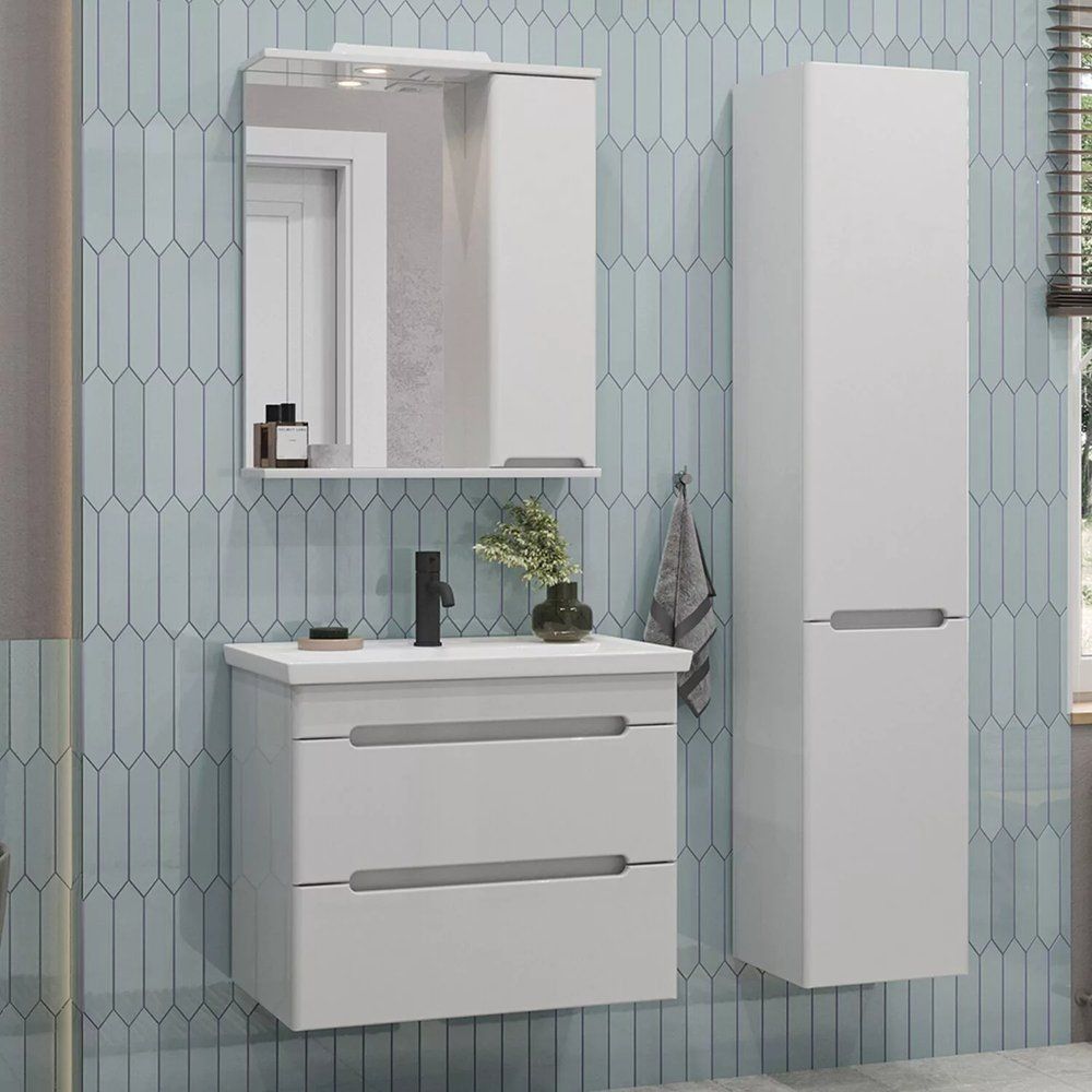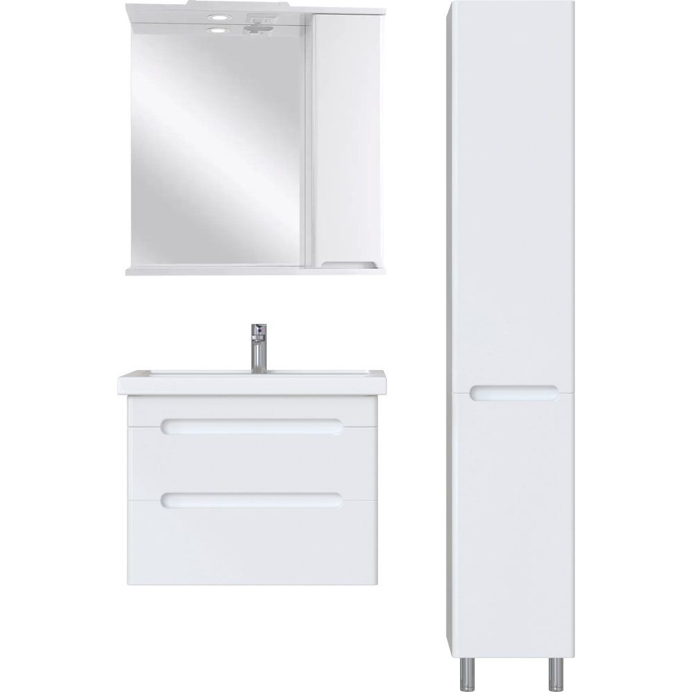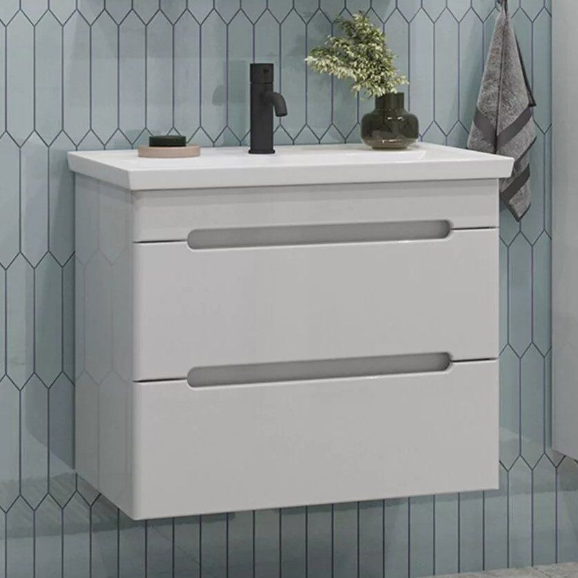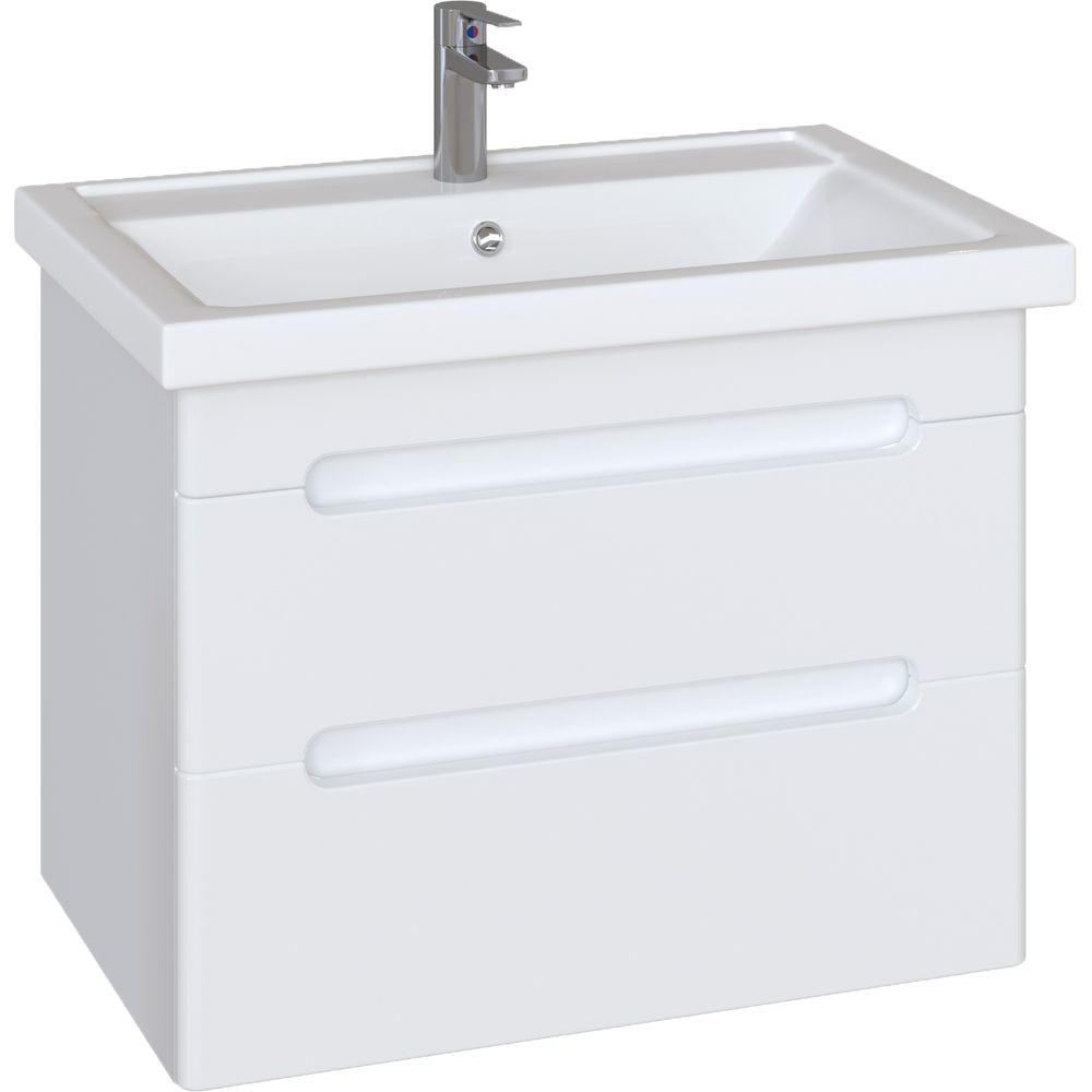 Тумба SanStar Адель 70, выполненная в белом цвете, имеет габариты 66,4x43,6x55 см и изготовлена из ламинированной ЛДСП с пленочным покрытием на МДФ фасаде. Ящики оборудованы механизмом доводчика для плавного и бесшумного закрывания. В комплект входит раковина Kirovit Фостер 70 из фаянса, габаритами 71x46,5 см, которую можно подвесить. Раковина включает встроенный слив-перелив и рассчитана на сифон диаметром 3.2 см, имеет одно отверстие под смеситель. Обратите внимание, донный клапан приобретается отдельно. Тумба и раковина произведены в России и покрываются гарантией - 3 года для тумбы и 10 лет для раковины.