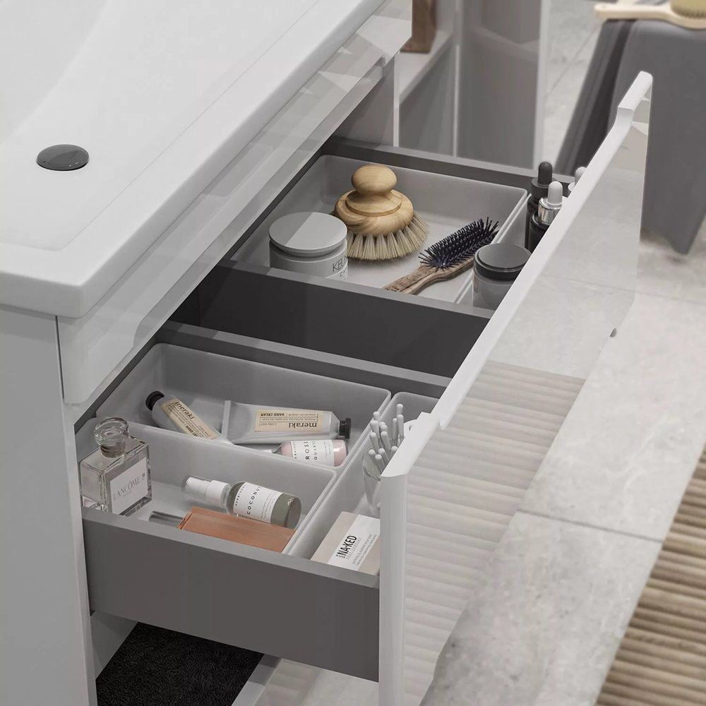 - Оснащена механизмом доводчика для плавного закрывания ящиков.