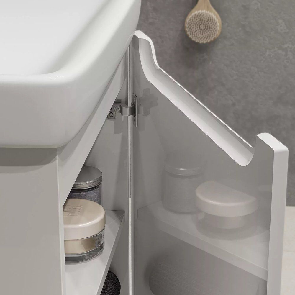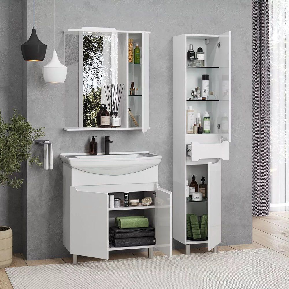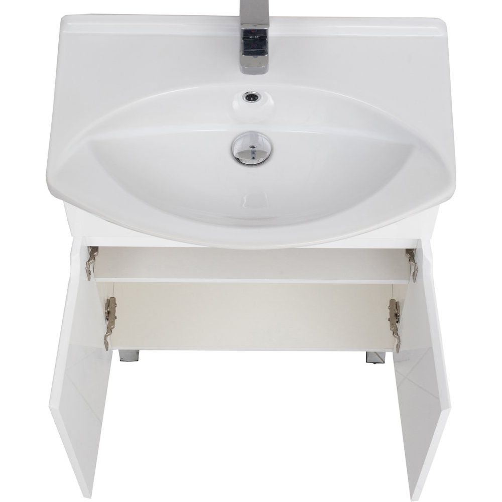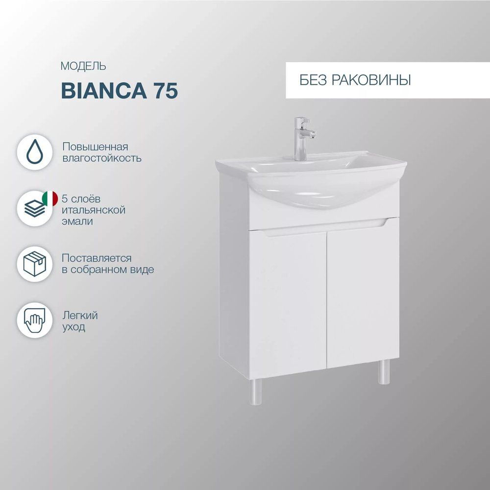 Тумба SanStar Bianca 75 — это качественная напольная конструкция габаритами 71,8x33,3x80 см, выполненная в белом цвете. Корпус из ЛДСП и фасад из МДФ, все покрыто стойкой эмалью, сохраняющей цвет и внешний вид. Механизм доводчика обеспечивает плавное закрывание дверок, за которыми скрыты несъемные полки для максимального удобства хранения.