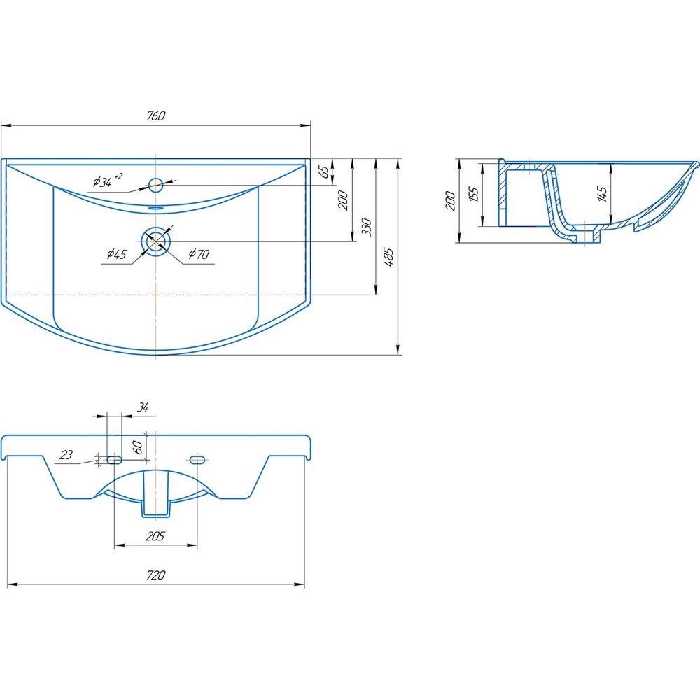 В комплекте идёт раковина Kirovit Стиль 75 с габаритами 76x48,5 см. Изготовленная из прочного фарфора, она оснащена встроенным сливом-переливом и готовым отверстием под смеситель. Однако донный клапан потребуется приобрести отдельно.