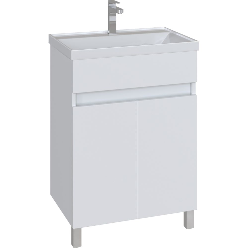 Тумба для комплекта SanStar Квадро 60 — напольная белая модель с размерами 56,4x38,6x80 см. Она оснащена механизмом доводчика для плавного закрывания дверок. Корпус выполнен из ЛДСП с ламинатным покрытием, а фасад из МДФ покрыт пленкой. Внутренние полки несъемные, предоставляется гарантия на 3 года. Продукция производства России.