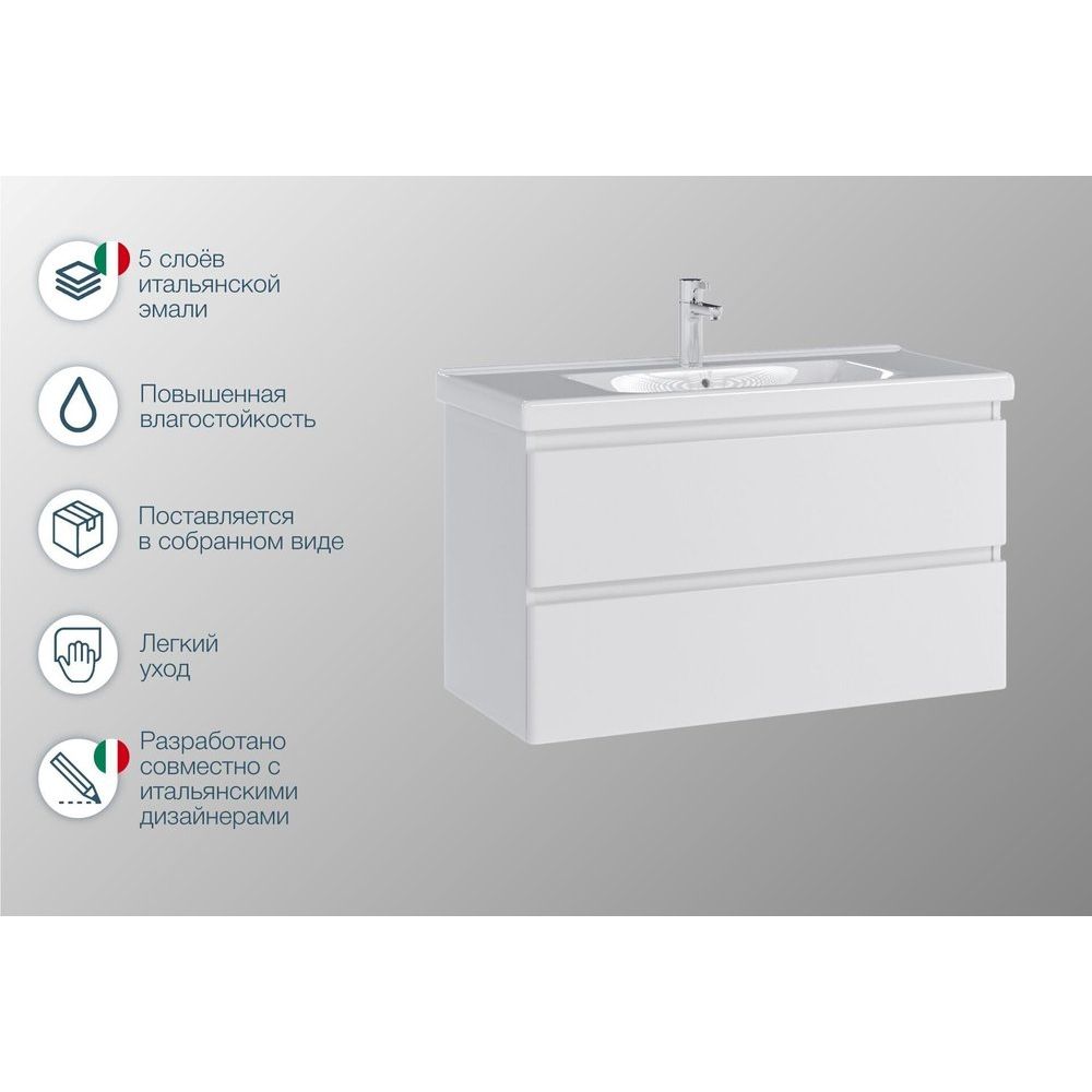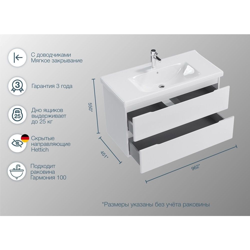Тумба SanStar Riana 100 подвесная выполнена из высококачественного ЛДСП с элегантной эмалью в качестве покрытия. Фасад изготовлен из МДФ, покрытого ламинатом и эмалью, что придает изделию роскошный вид. Хромированная фурнитура подчеркивает стиль и изысканность. Специальный механизм обеспечивает плавное закрывание ящиков. Тумба подвесная и поставляется в белом цвете, что позволяет ей вписаться в любой интерьер. Габариты тумбы составляют 96,2x45,1x55 см.