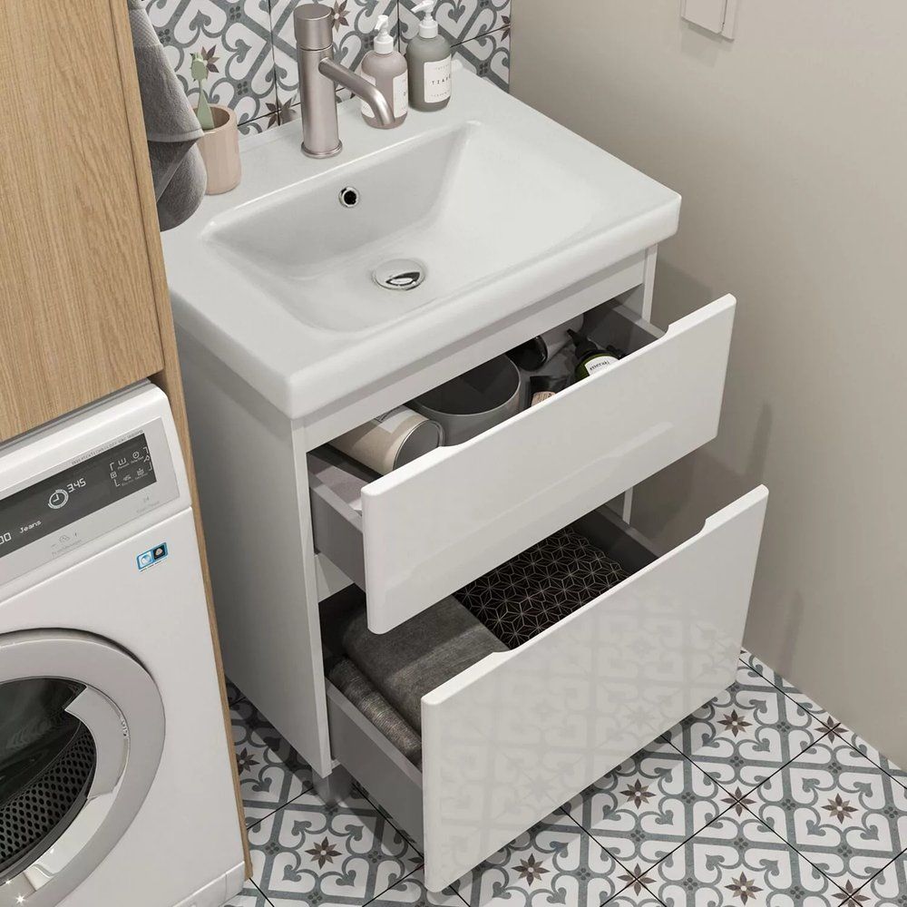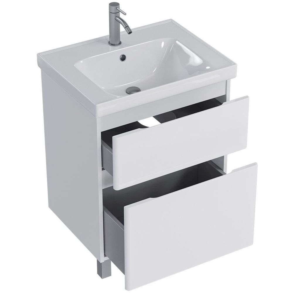 Мечтаете о стильной и функциональной ванной комнате? Тумба с раковиной SanStar Riana 60 — идеальное решение для тех, кто ценит комфорт и надежность. Эта компактная, но весьма вместительная тумба с легкостью впишется в интерьер любой ванной комнаты, предлагая вам удобство и современный дизайн. Белоснежный корпус тумбы и раковина, выполненная из высококачественного фарфора, добавят изящества и свежести вашему пространству.