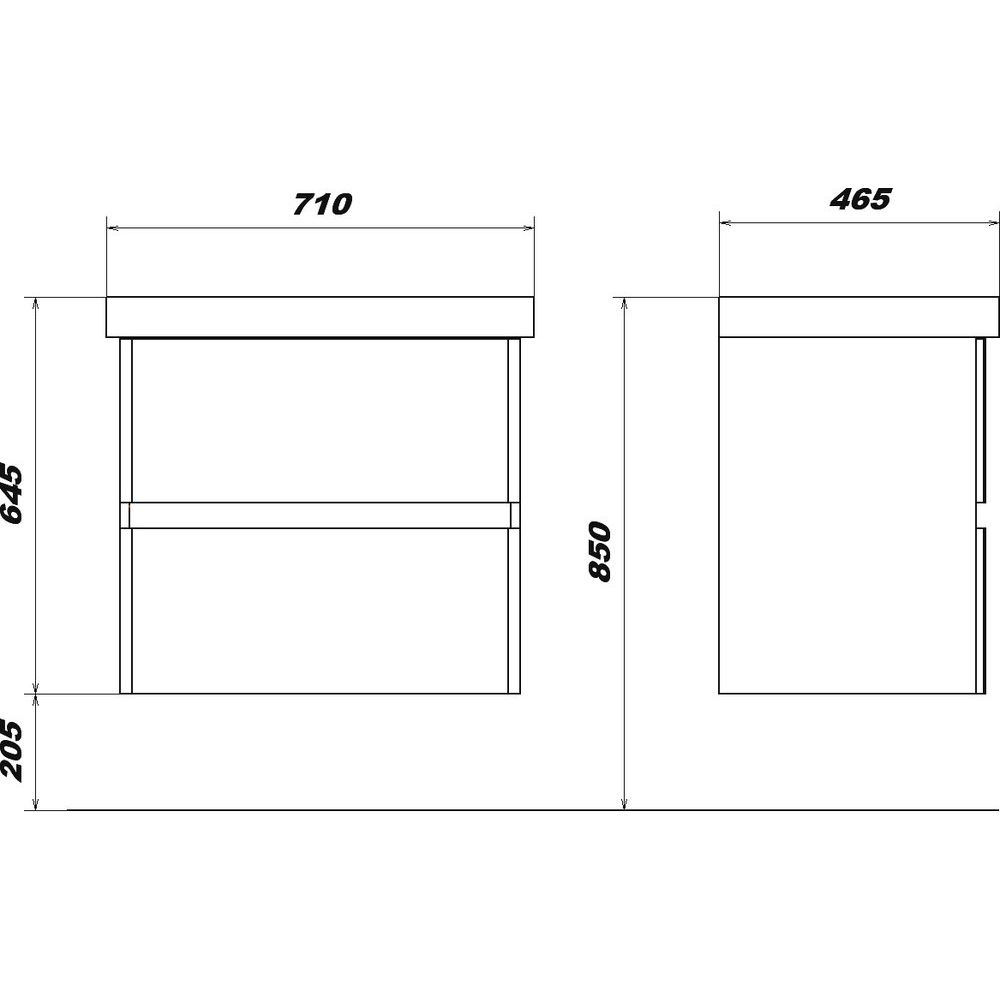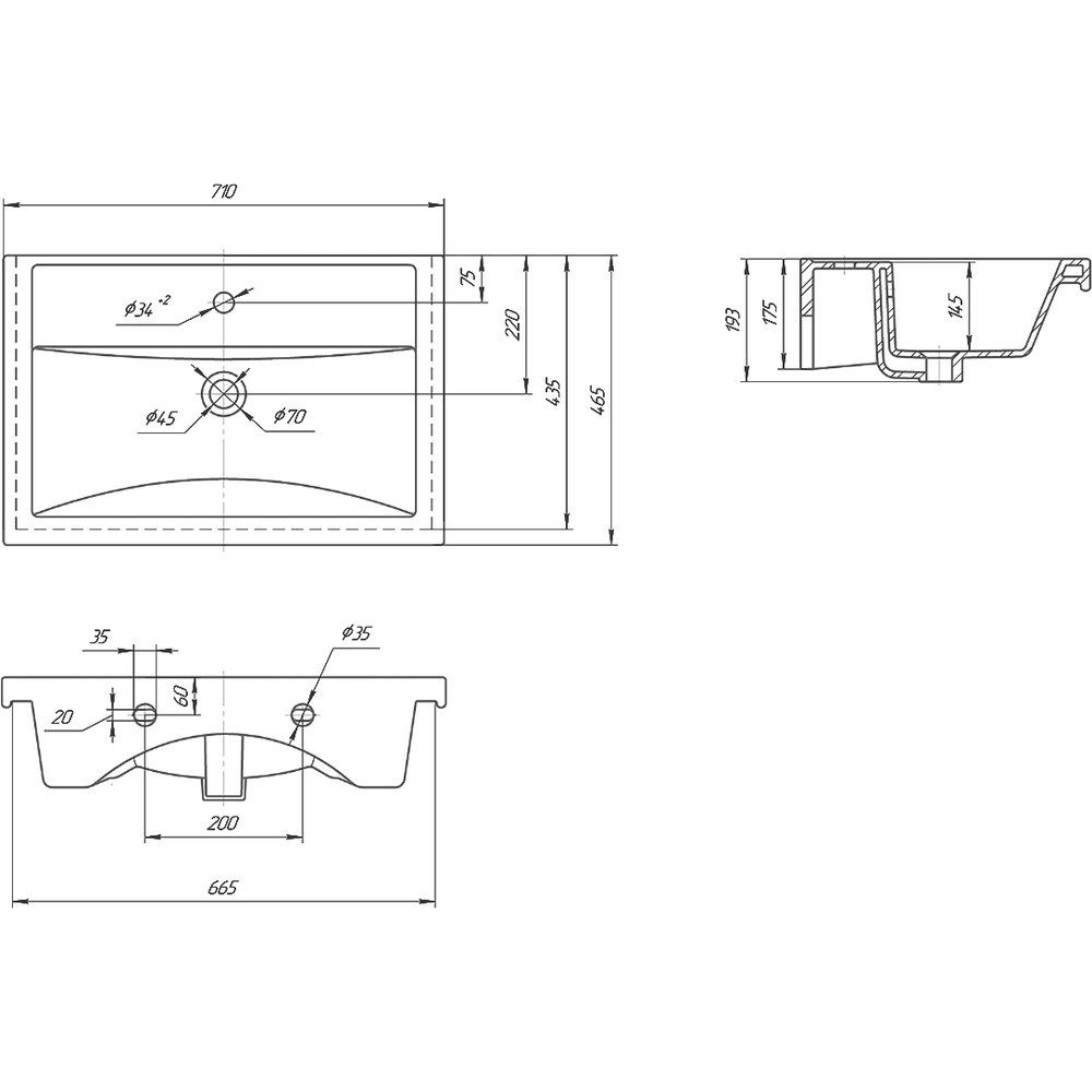 Мебельная раковина Kirovit Фостер 70 с габаритами 71x46,5 см также подвесная и выполнена из фаянса. Она имеет встроенный слив-перелив и одно готовое отверстие под смеситель, а донный клапан нужно приобрести отдельно. Гарантия на раковину — 10 лет, страна производства — Россия.