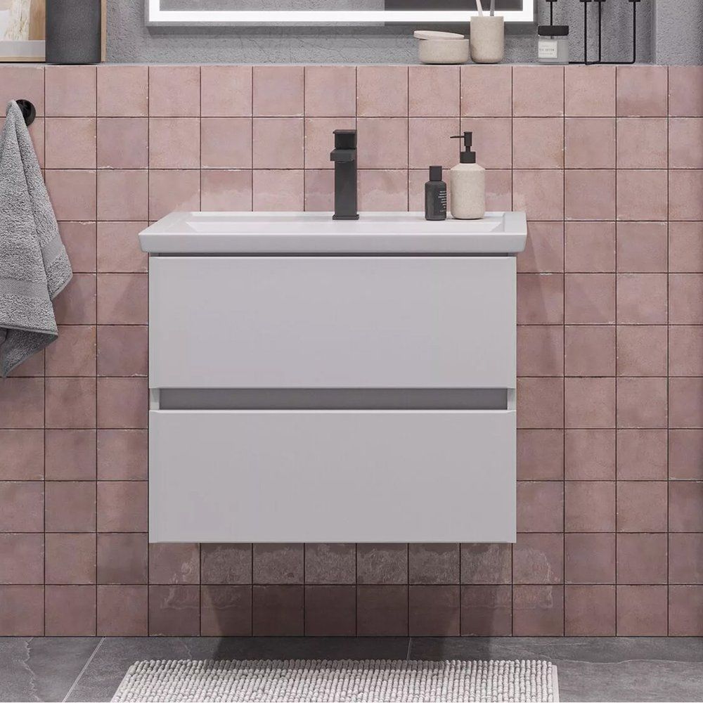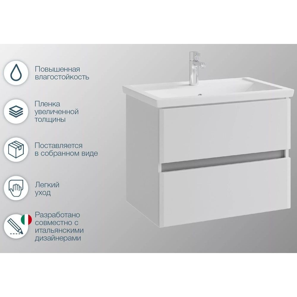 - Комфорт в использовании: раковина из фаянса с встроенным сливом-переливом дополняет тумбу и обеспечивает функциональность.