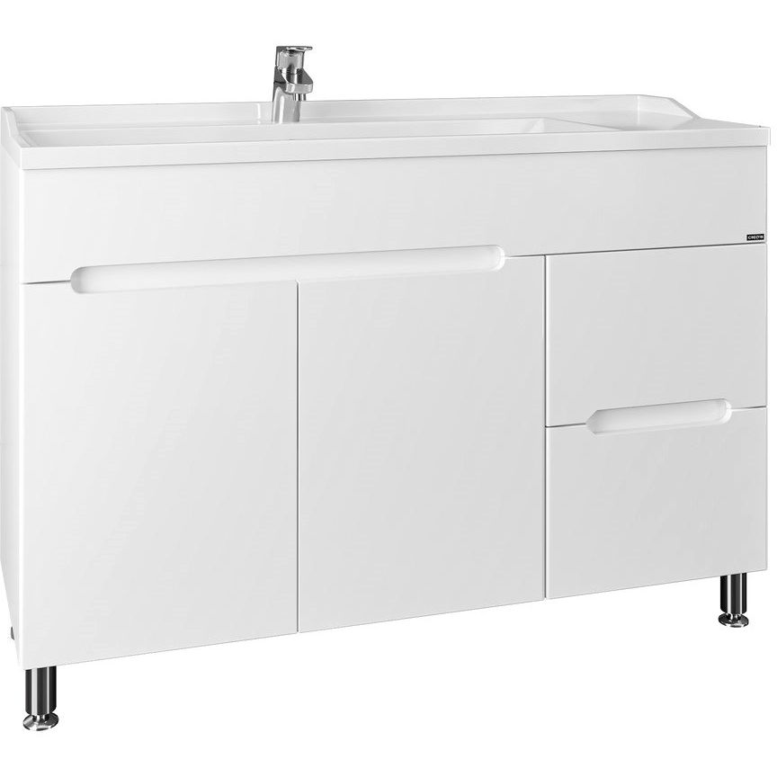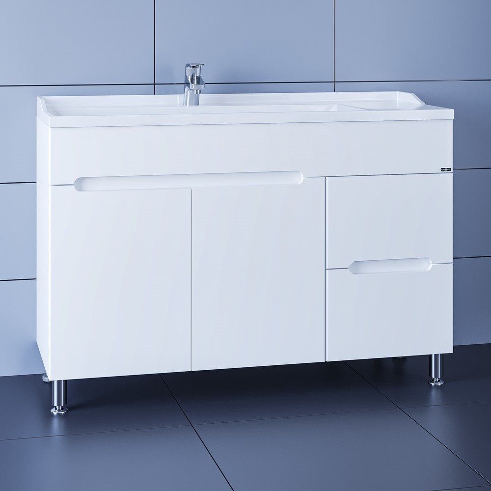 - Габариты раковины: ширина 120 см, глубина 45 см, материал — искусственный мрамор.