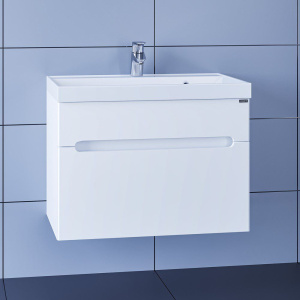 Тумба с раковиной СаНта Лондон 70 подвесная от известного российского бренда «СаНта» — это исключительное сочетание стиля и функциональности для вашей ванной комнаты. Изготовленная из влагостойкого МДФ и покрытая глянцевой ПВХ-пленкой, эта модель идеально вписывается в современные интерьеры. Подвесная конструкция не только экономит пространство, но и позволяет скрыть все инженерные коммуникации, обеспечивая к ним быстрый доступ в случае необходимости. Два просторных ящика легко вместят как крупные, так и мелкие принадлежности, а врезные ручки обеспечивают тихое и плавное закрывание.