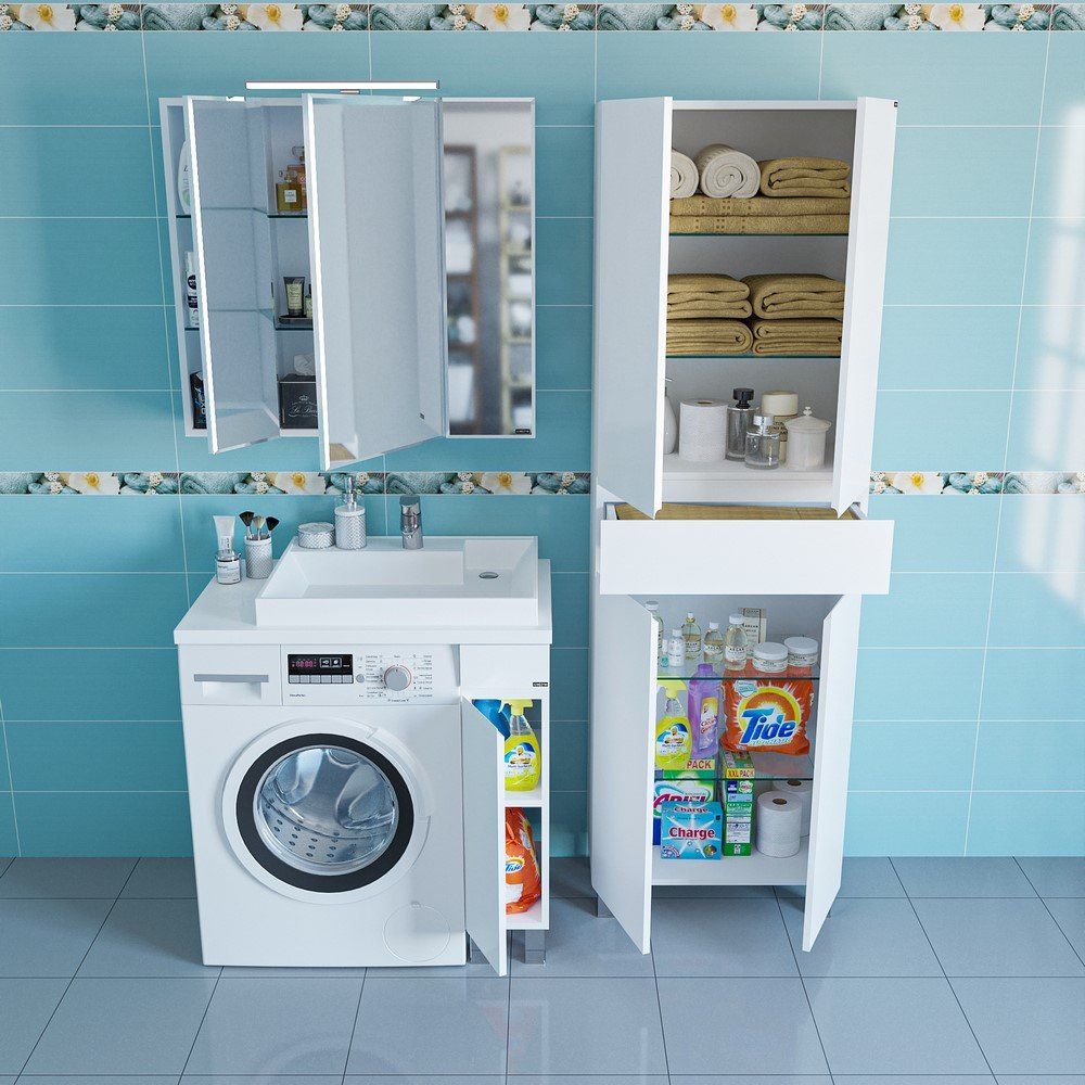 - Компактность и универсальность — специально рассчитана для установки над стиральной машиной, что позволяет максимально эффективно использовать пространство в ванной комнате.