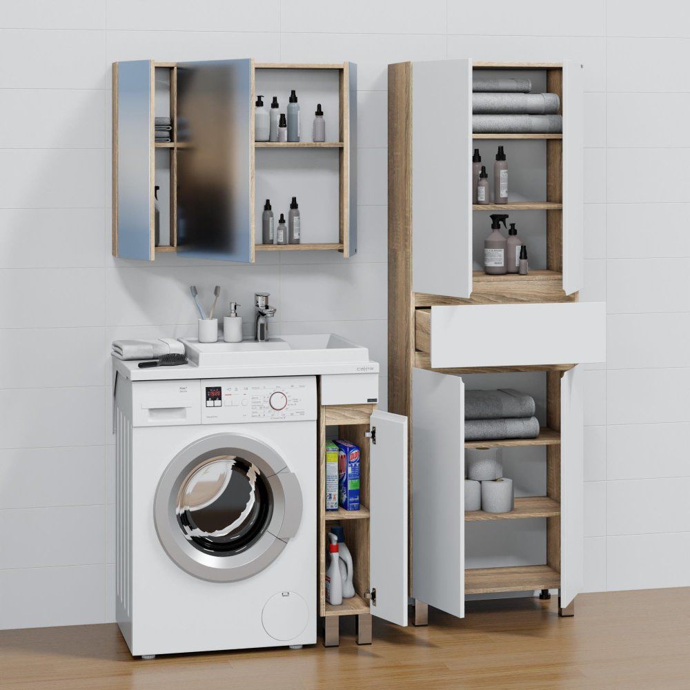 Тумба входит в коллекцию СаНта Марс и имеет размеры 19x49x77 см, идеально подходящие для установки на пол. Корпус выполнен из ЛДСП с ламинатным покрытием, а фасад — из МДФ с эмалевым покрытием. Внутренние полки тумбы несъемные для большей устойчивости содержимого, а декоративные ножки придают ей изысканный вид.
