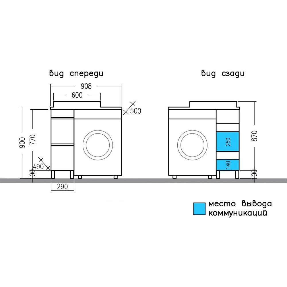 - Высокая функциональность за счет возможности установки под стиральную машину.