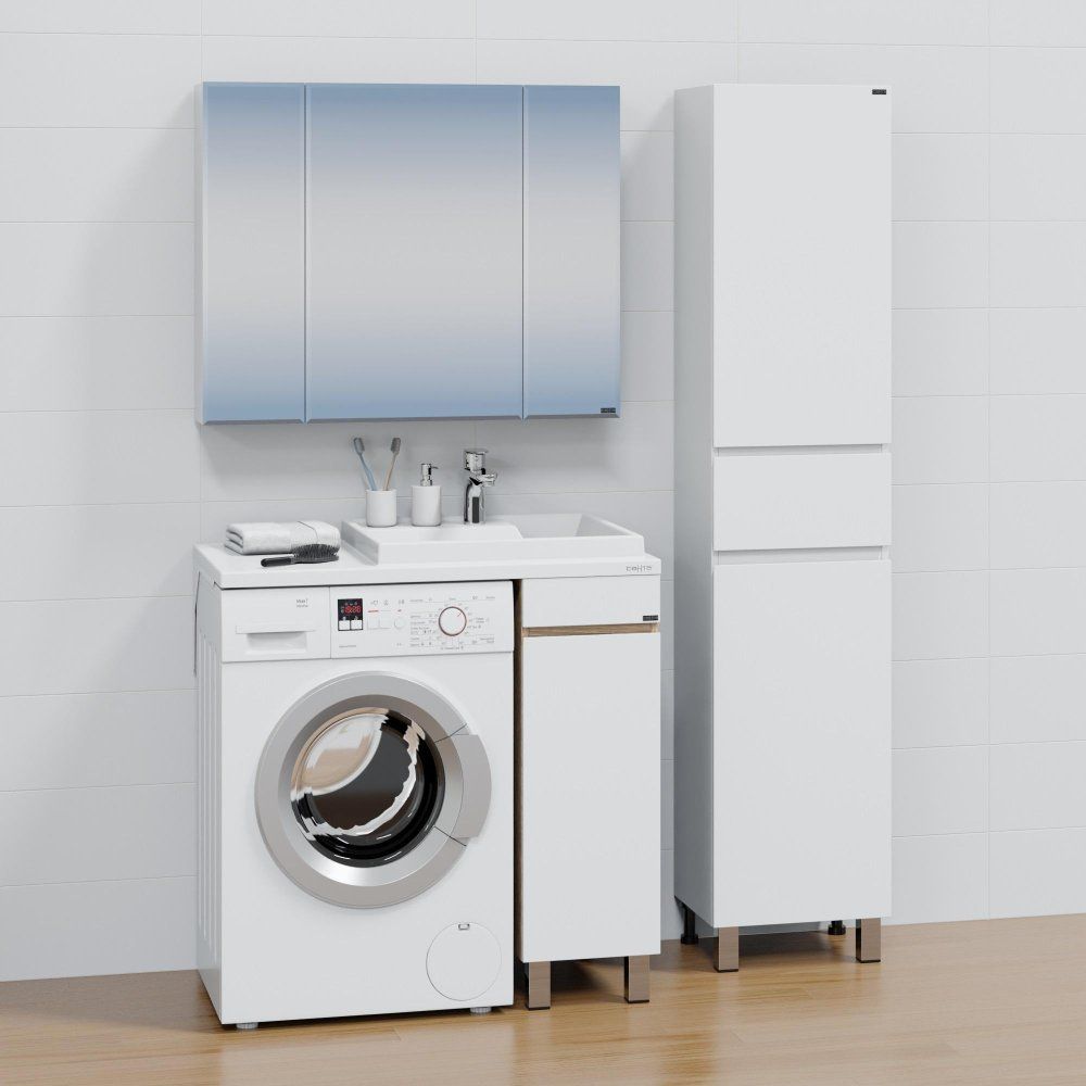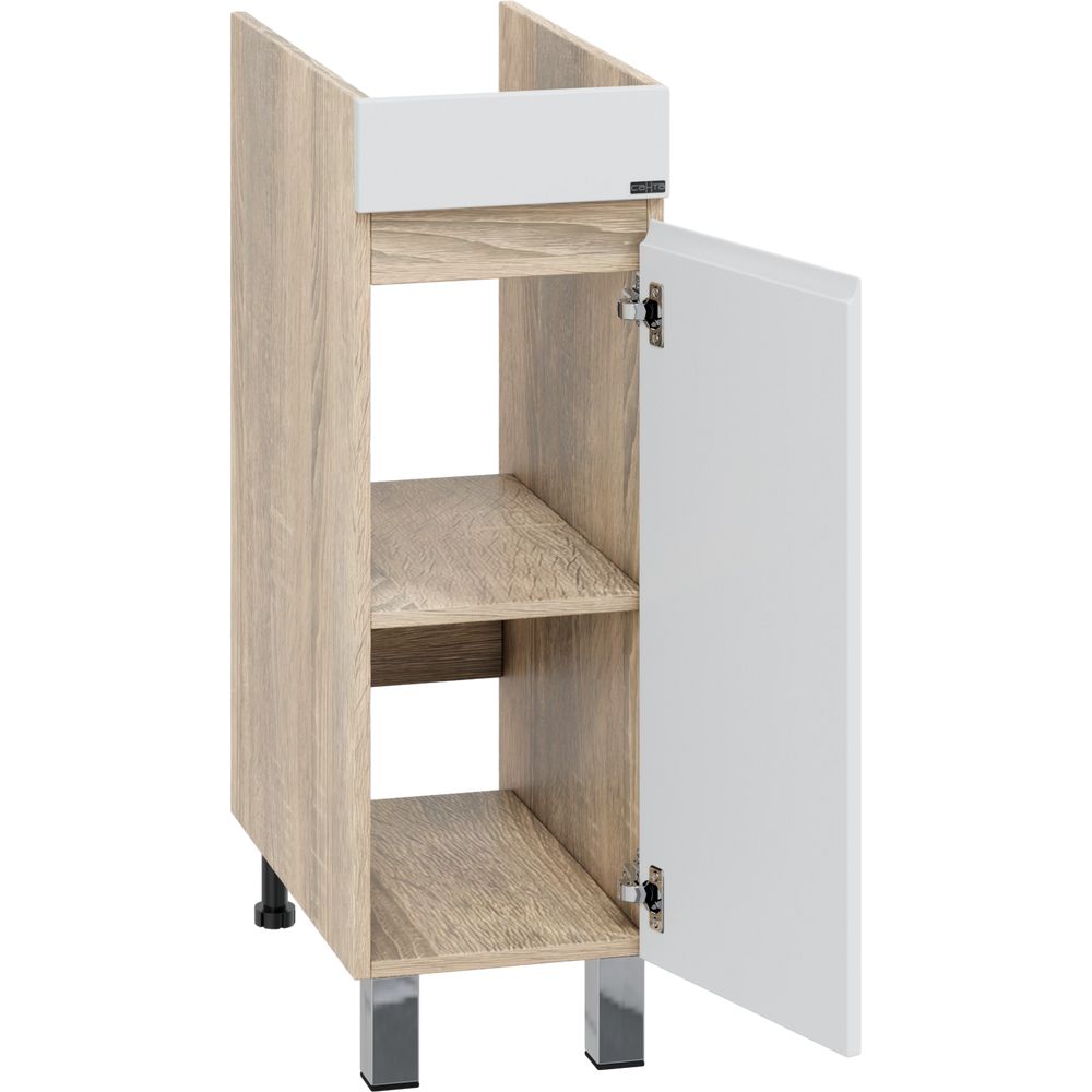 Тумба для комплекта имеет размеры 29x49x77 см и предназначена для размещения на полу. Корпус и фасад изготовлены из ЛДСП с ламинатным и эмалированным покрытием соответственно, что обеспечивает долговечность и стойкость к влаге. Оснащена одной дверцей и опорными ножками для более прочной установки. Гарантия на изделие составляет 1 год, страна производства — Россия.