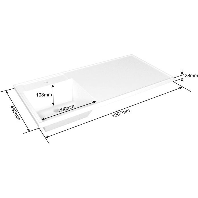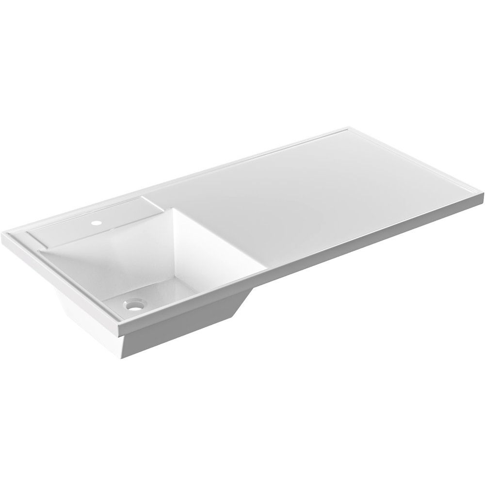 Раковина, выполненная из искусственного мрамора с размерами 100,7x48,2 см, также является подвесной. Она оснащена кронштейном и предусматривает одно монтажное отверстие под смеситель. Раковина совместима со стиральной машиной и имеет диаметр для сифона 3.2 см.