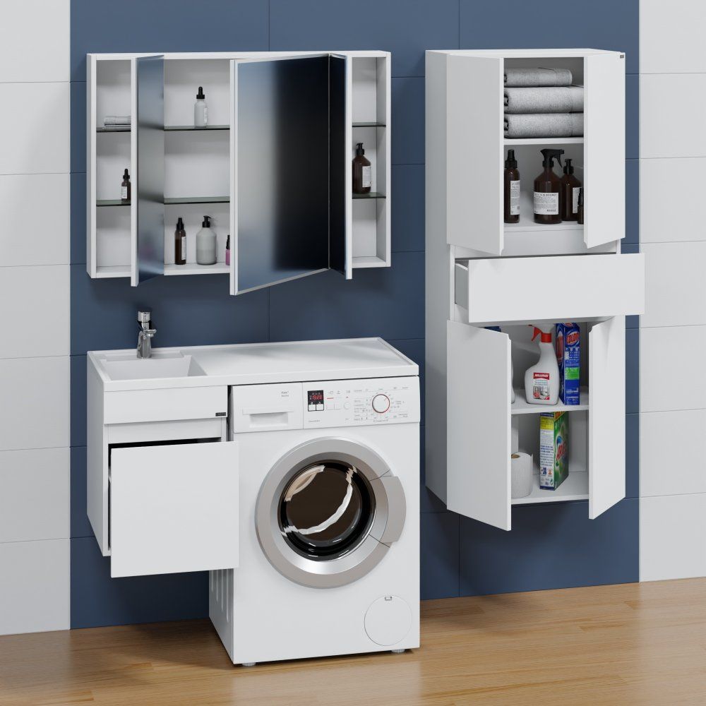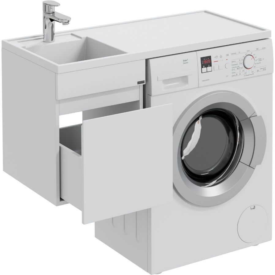 Важно учитывать конструктивные особенности тумбы с раковиной при выборе сифона — необходимо индивидуально подбирать его, учитывая параметры изделия. Также обратите внимание, что установка донного клапана не предусмотрена. Позаботьтесь о точных замерах для оптимальной установки над стиральной машиной.