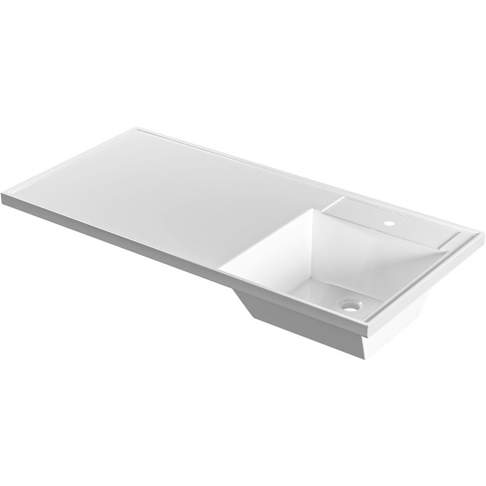 В комплекте используется раковина СаНта Лидер 100 R, изготовленная из искусственного мрамора, со следующими размерами: 100,7x48,2 см. Она оснащена кронштейнами для надежной установки и имеет отверстие для смесителя. Диаметр сифона должен составлять 3,2 см, а донный клапан приобретается отдельно. Эта раковина идеально подходит для установки над стиральной машиной, что делает ее идеальным выбором для небольших ванных комнат.