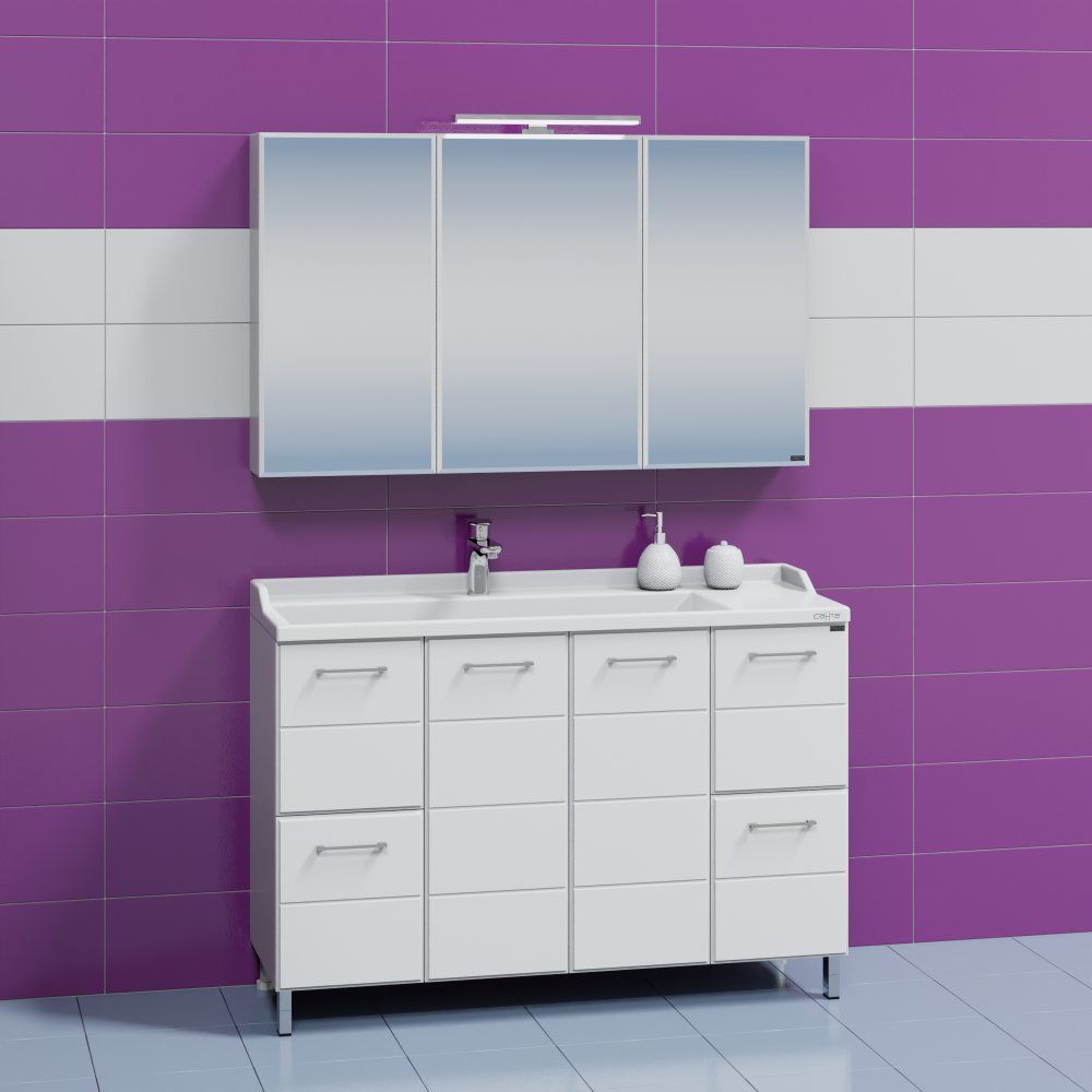 Тумба с раковиной СаНта Омега Люкс 120 станет идеальным выбором для просторных ванных комнат. Это функциональная и стильная модель, оснащенная вместительной системой хранения. С четырьмя полностью выдвигающимися ящиками, двумя дверцами на доводчиках и хромированными ручками, эта тумба обеспечивает не только удобство использования, но и современный внешний вид. Большая раковина из искусственного мрамора гарантирует долговечность и гигиеничность, препятствуя скоплению бактерий и налета. Выполненная из влагостойких материалов, тумба обладает повышенной устойчивостью к влаге благодаря специальному покрытию фасада.