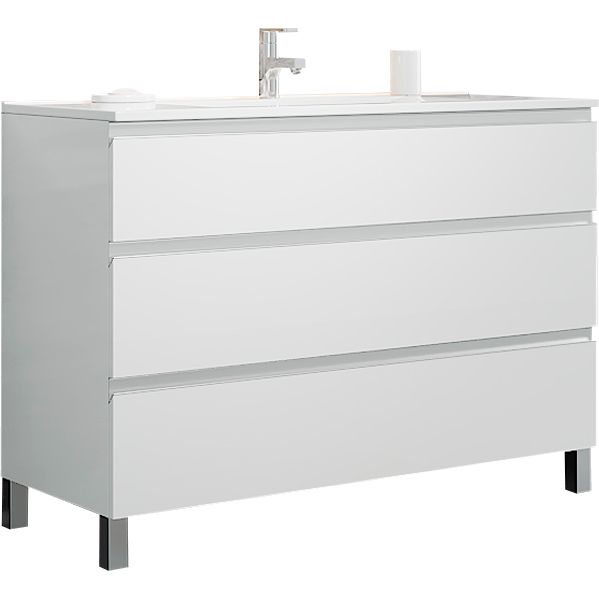 Тумба под раковину Sanvit Авеню обладает габаритами 120x46x85 см и устанавливается на пол. Ящики оснащены плавным механизмом доводчика. Корпус и фасад выполнены из МДФ и покрыты защитной пленкой, что повышает стойкость к влаге и механическим повреждениям. Мебельная раковина Sanvit 9120 D имеет размеры 121x46 см и изготовлена из прочного фаянса. Для комфортного использования в раковине предусмотрен встроенный слив-перелив, и имеется готовое отверстие для смесителя диаметром 3.2 см.