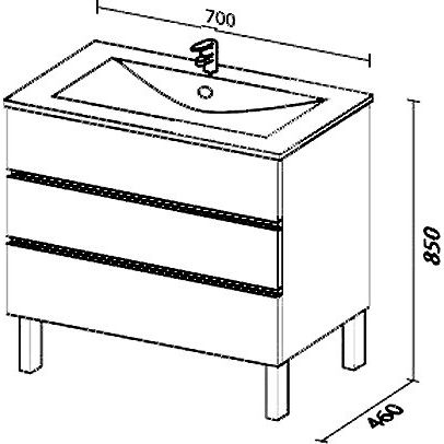 Тумба Sanvit Авеню 3 70 имеет размеры 70x46x85 см и выполнена в напольном варианте. Корпус и фасад изготовлены из МДФ, покрытого пленкой, что обеспечивает защиту от влаги. Оснащена ящиками с механизмом доводчика для плавного закрывания. Гарантия на корпус составляет 1 год, производство — Россия. Раковина Sanvit 9070 D, которая входит в комплект, имеет размеры 71x46 см, изготовлена из качественного фаянса и оснащена встроенным сливом-переливом. Требуется приобретение донного клапана отдельно. Гарантия на раковину составляет 5 лет, производство — Китай.