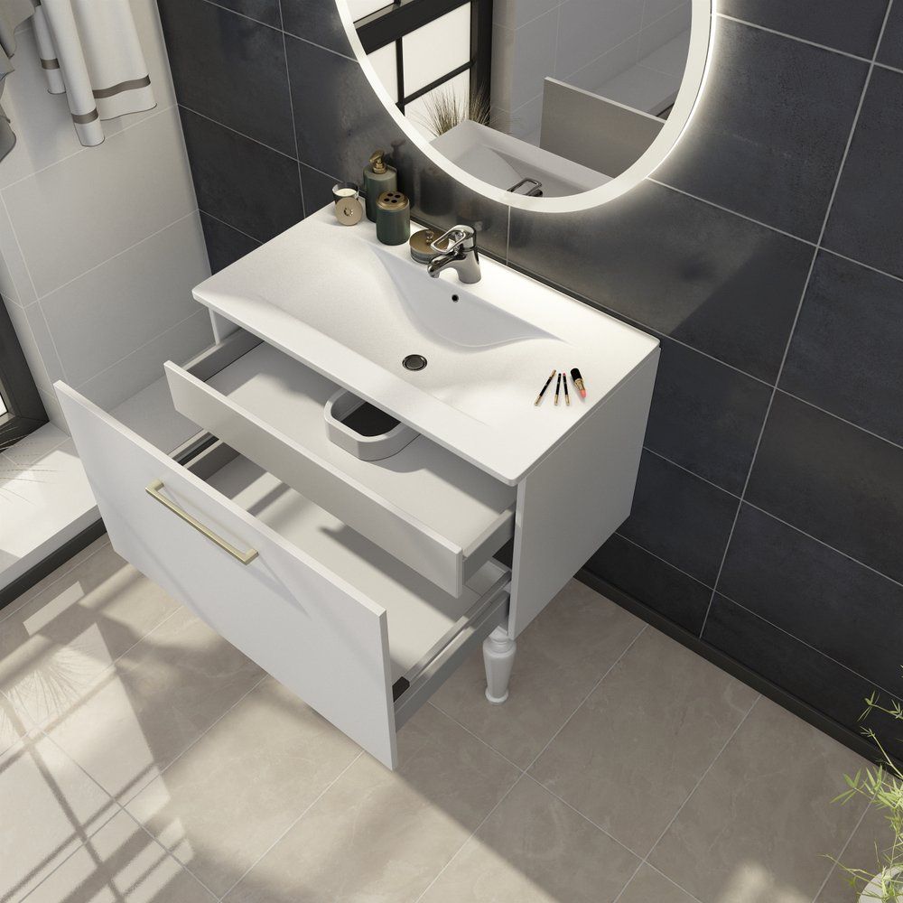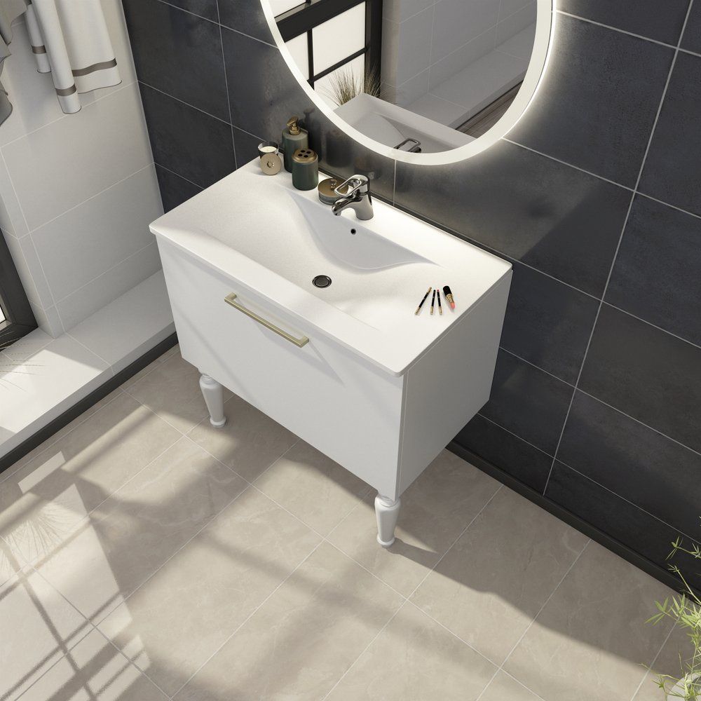 Мечтаете о стильной и функциональной ванной комнате? Тумба с раковиной Sanvit Эмми 80 белая станет идеальным выбором для вашего интерьера. Эта изящная и практичная модель сочетает в себе качество, комфорт и современный дизайн — все, что необходимо для создания уютного пространства. Вы оцените эстетику и продуманность каждой детали, которые делают вашу ванную комнату настоящим местом для релакса и заботы о себе.
