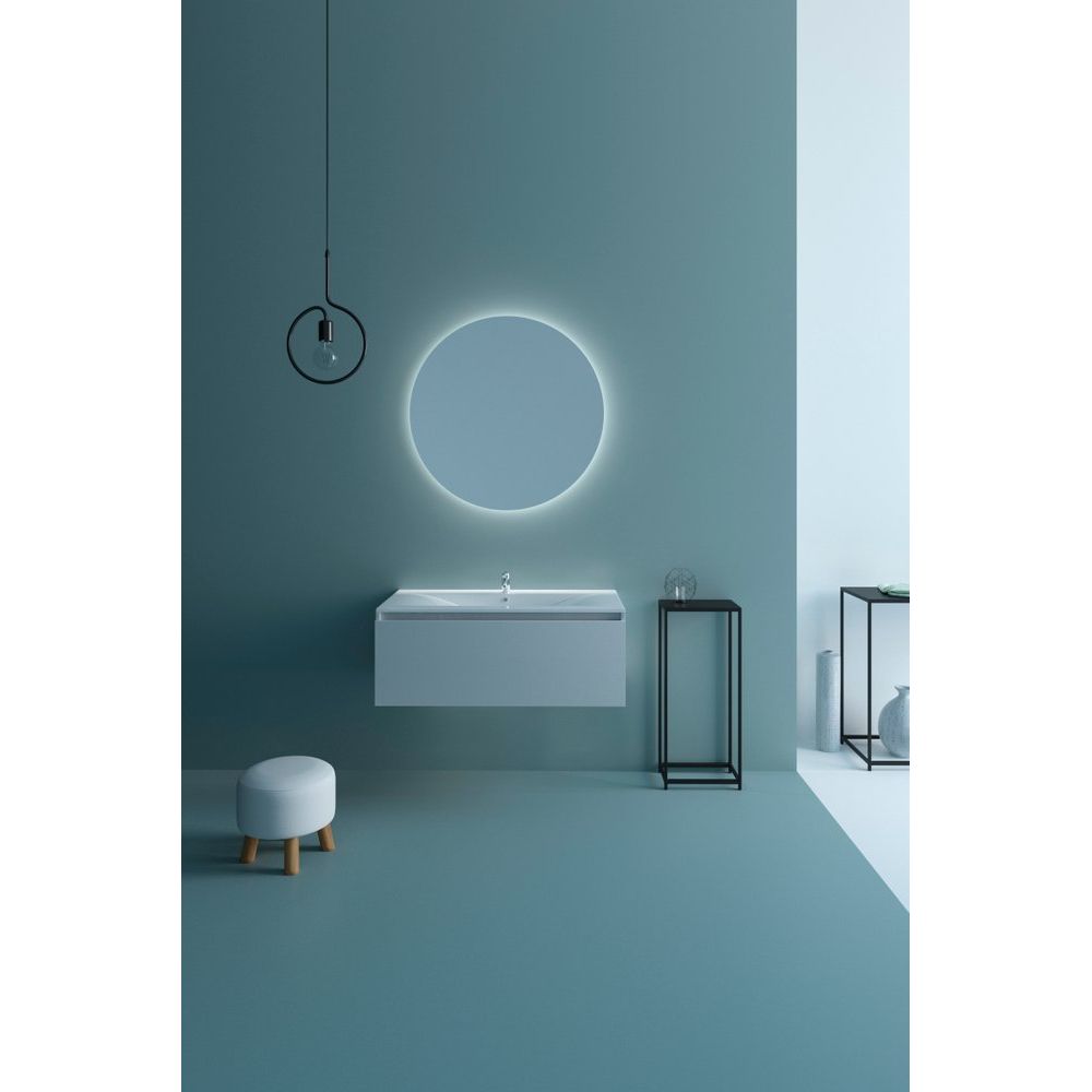 Тумба под раковину имеет габариты 100x46x35 см и выполнена в подвесном варианте, что упрощает уборку и добавляет визуальной легкости. Корпус и фасад изготовлены из МДФ, покрытого пленкой, что обеспечивает долгий срок службы и защиту от влаги. Мебель комплектуется ящиками на доводчиках для плавного закрывания и имеет гарантию 1 год, произведено в России.