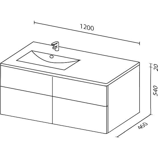 Тумба Sanvit Лира имеет габариты 120x46x54 см и выполнена из прочного МДФ с пленочным покрытием, что защищает мебель от влаги. Оснащена механизмом доводчика, который обеспечивает плавное закрывание ящиков. Ящики открываются от нажима, а навесы способны выдерживать нагрузку до 200 кг.
