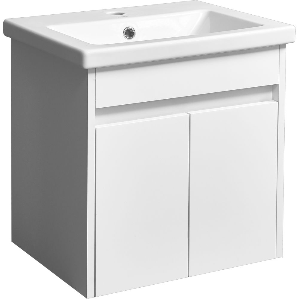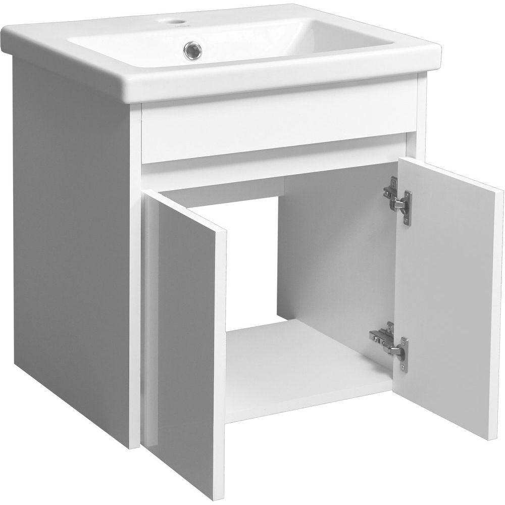 Габариты подвесной тумбы составляют 49,6x36x50 см, что делает её крайне компактной и удобной для использования в ограниченном пространстве. Корпус выполнен из ЛДСП с ламинатом, а фасад из качественного МДФ, покрытого пленкой, что защищает от влаги и повреждений. Раковина Cersanit Como 50 имеет размеры 50x40 см и сделана из прочной фарфоровой керамики. Она оснащена удобным встроенным сливом-переливом и имеет отверстие для смесителя. Не забудьте, что донный клапан необходимо приобрести отдельно. Гарантия на тумбу составляет 1 год, а на раковину — целых 10 лет.