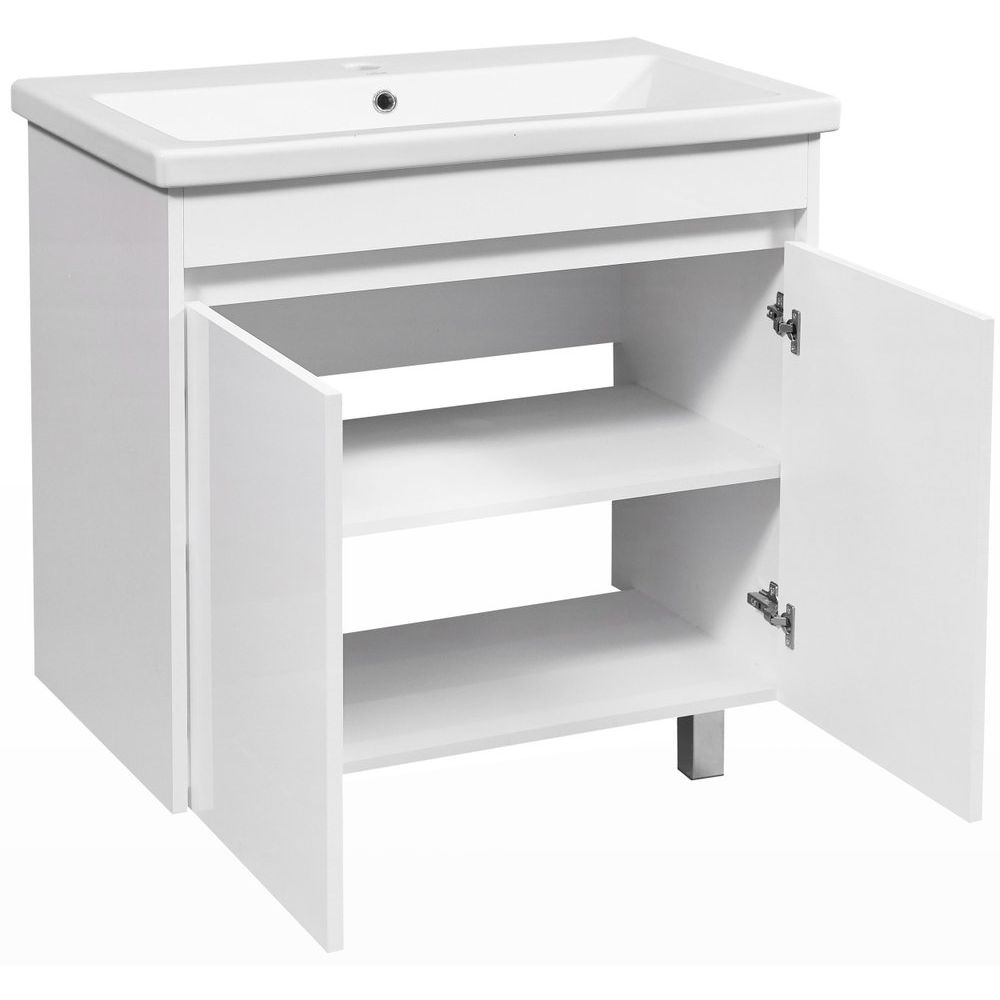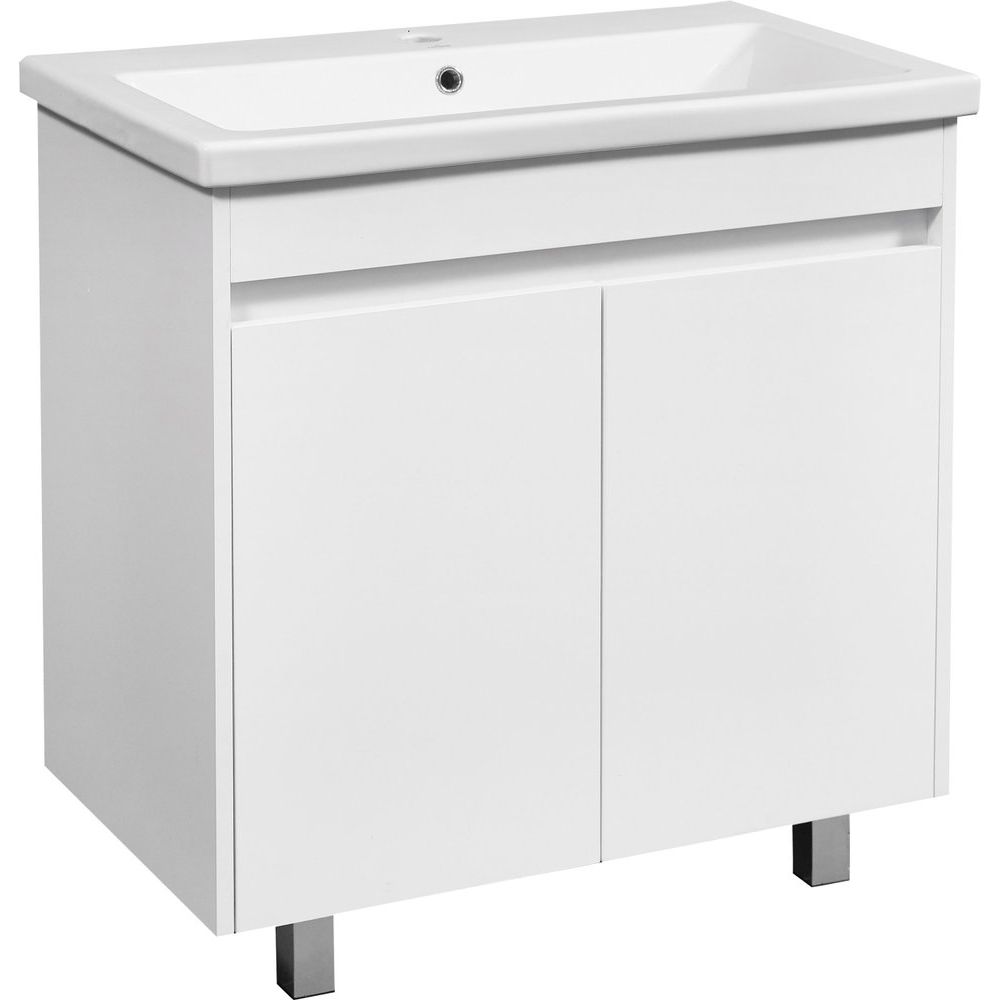 Тумба для комплекта Stella Polar Фаворита 80 имеет габариты 79,2x43x82 см и предназначена для напольной установки. Корпус выполнен из высококачественного ЛДСП с ламинированным покрытием, в то время как фасады изготовлены из МДФ и покрыты пленкой для дополнительной защиты.