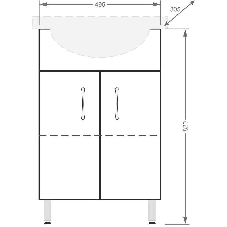 Тумба Stella Polar Концепт 55 ЭКО имеет габариты 49,5x30,5x82 см, выполнена из прочного ЛДСП, покрытого ламинатом. Фасад из МДФ с пленочным покрытием дополняет хромированная фурнитура, создавая элегантный акцент. Напольная модель без механизма доводчика, оснащена дверками. Раковина Rosa Уют 55 имеет размеры 55,5x44,5 см, выполнена из фаянса с встроенным сливом-переливом и одним отверстием под смеситель. Диаметр сифона — 3.2 см, донный клапан приобретается отдельно. Гарантия на тумбу составляет 1 год, на раковину — 5 лет. Производство — Россия.