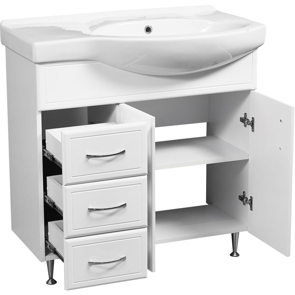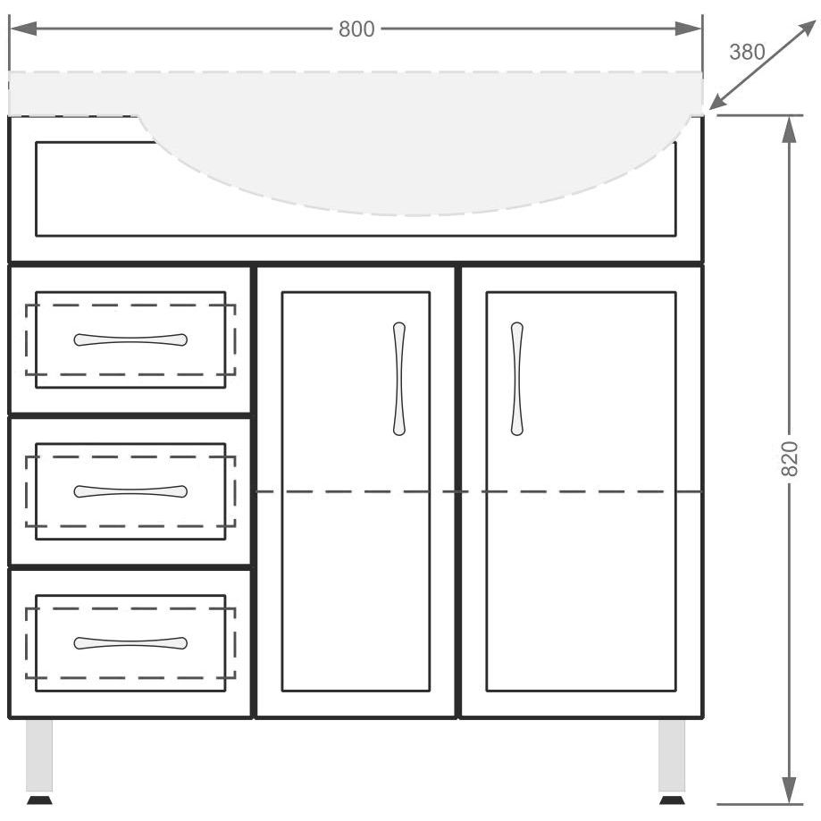 Тумба Stella Polar Концепт 80 L имеет габариты 80x38x82 см и предназначена для напольной установки. Её корпус выполнен из ЛДСП с ламинатным покрытием, а фасад — из МДФ, покрытого плёнкой для дополнительной защиты. Хромированная фурнитура добавляет стильные акценты. В конструкции предусмотрены ящики, расположенные слева, что обеспечивает удобный доступ к хранению необходимых мелочей.