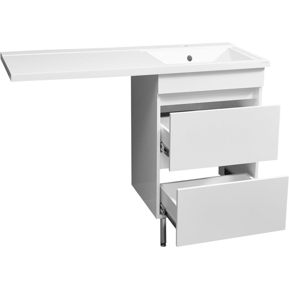 Пространство в ванной комнате отлично организует тумба с раковиной Stella Polar Мадлен 100, которая превращает интерьер в удобное и функциональное помещение. Эта тумба разработана специально для установки над стиральной машиной, что позволяет экономно использовать пространство. Гармоничное сочетание передовых материалов и стильного дизайна делает ее незаменимой частью вашей ванной комнаты. Любое движение ящиков будет плавным и тихим благодаря встроенному механизму доводчика, а качественные материалы обещают долгий срок службы.
