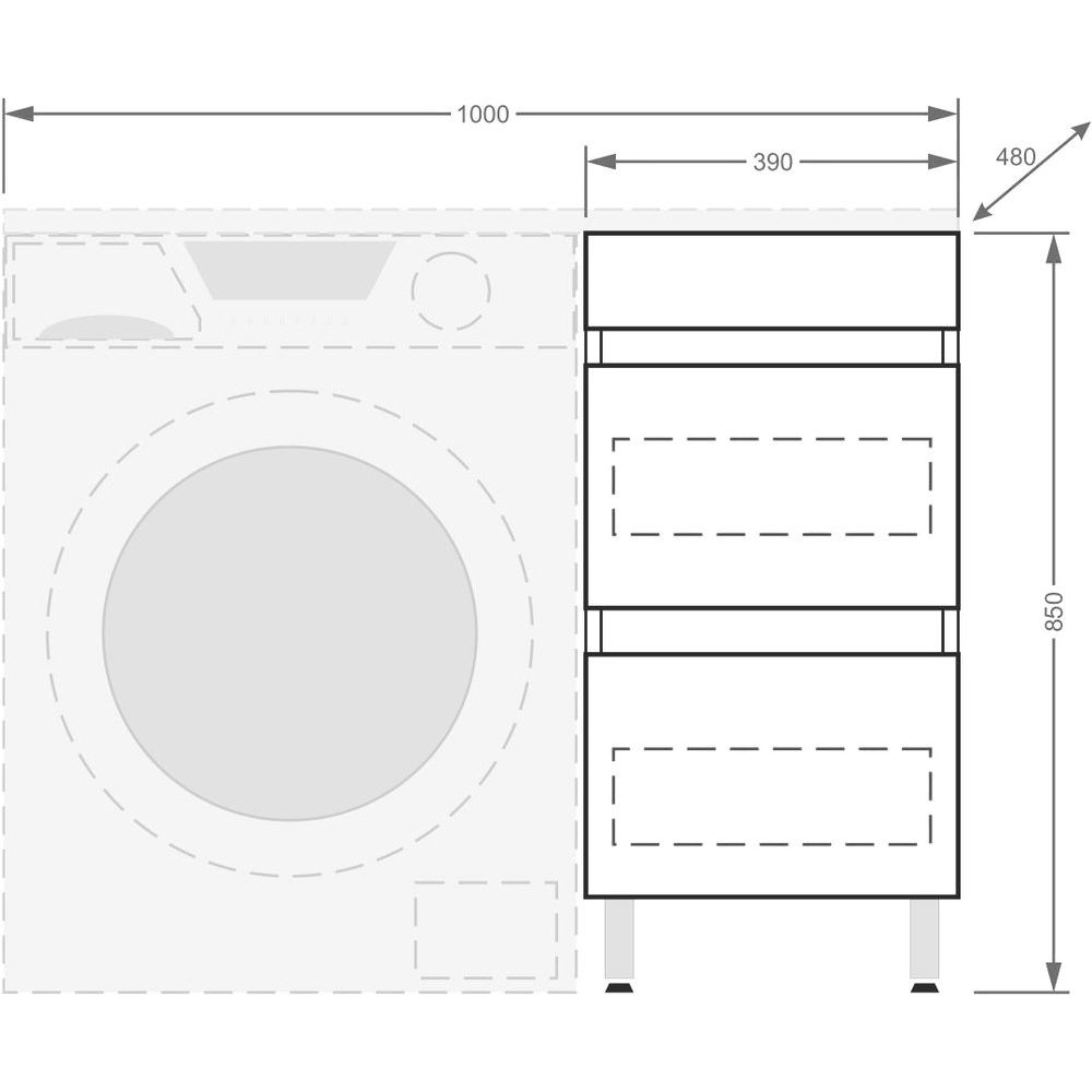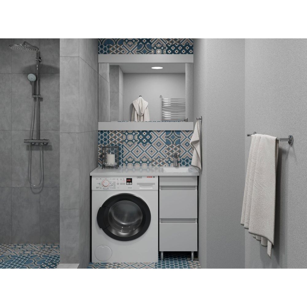- Эргономичный дизайн, позволяющий использовать пространство над стиральной машиной.