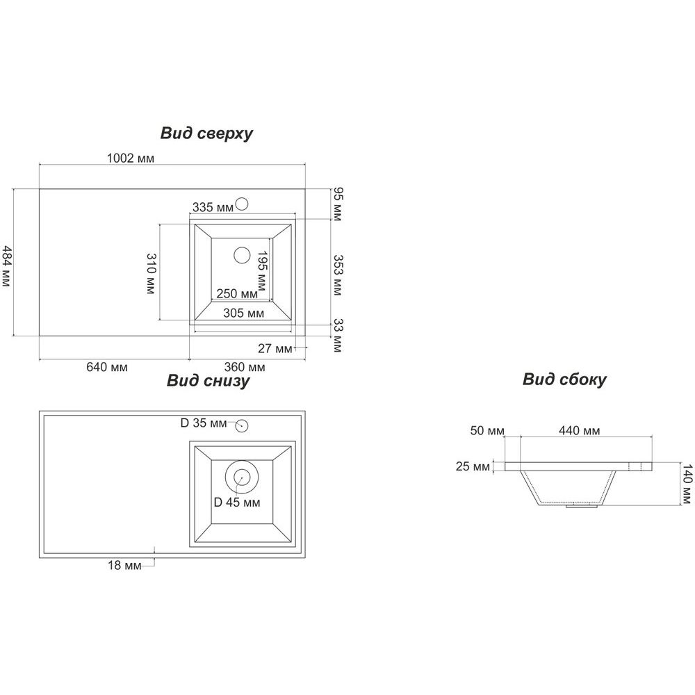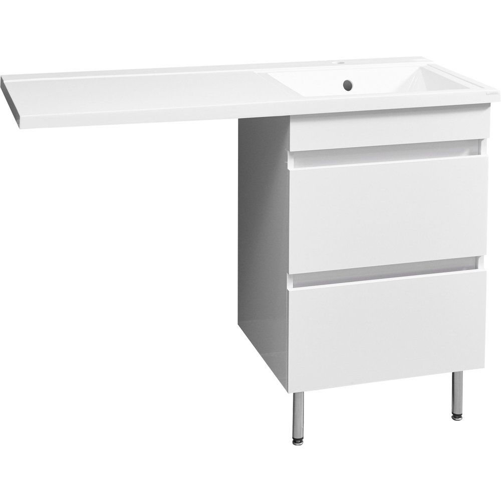 Мебельная раковина белого цвета изготовлена из искусственного мрамора с габаритами 100,2x48,4 см. Оснащена одним готовым отверстием под смеситель и подходит для сифонов диаметром 3.2 см (донный клапан приобретается отдельно). Кронштейн для раковины сделан из стали с размерами 11x5.5x36 см, что гарантирует надёжное крепление и поддержку.