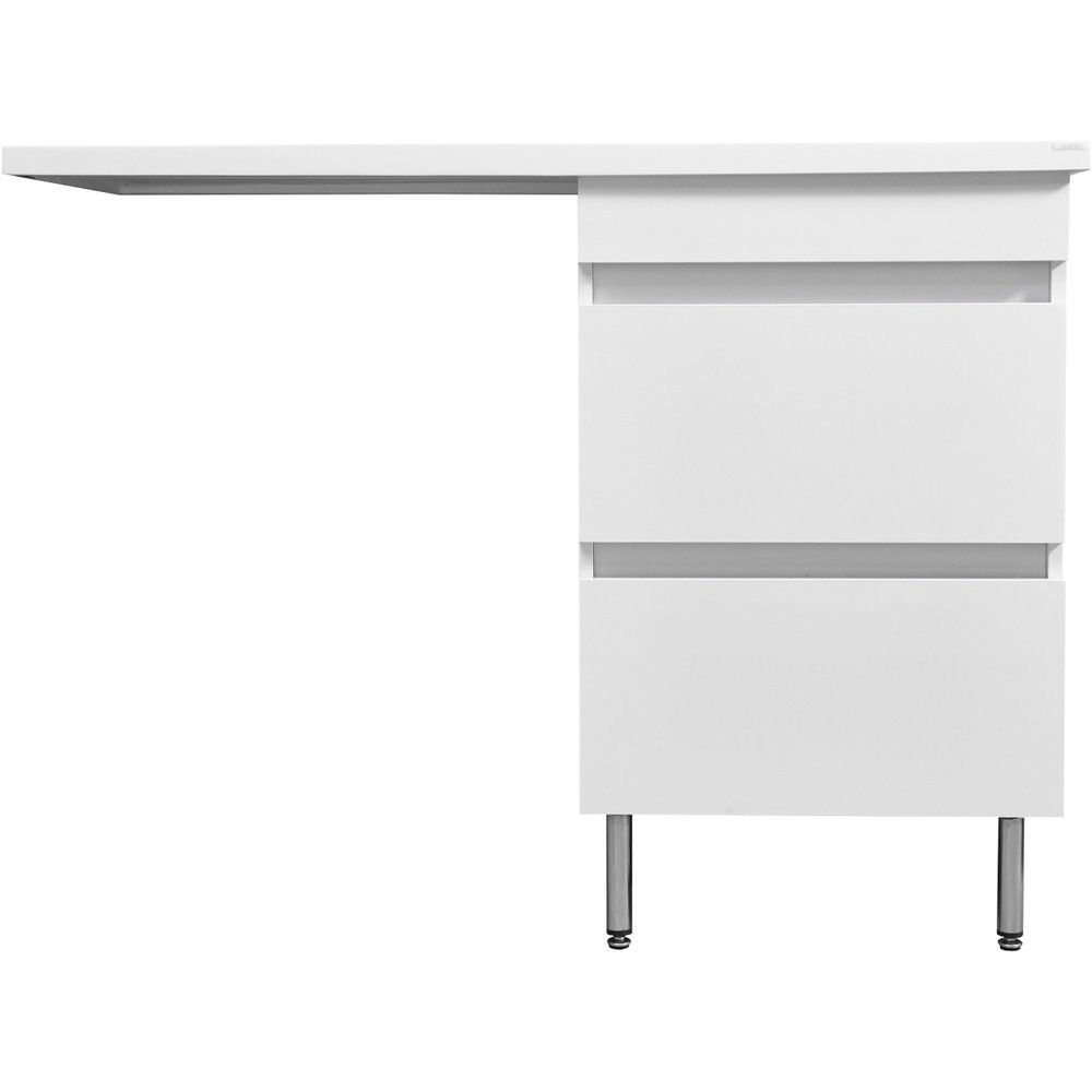Тумба имеет размеры 39x48x85 см и выполнена из ЛДСП с пленочным покрытием. Механизм доводчика обеспечивает плавное закрывание ящиков, что увеличивает их срок службы. Фасад из МДФ также покрыт пленкой для защиты от влаги.