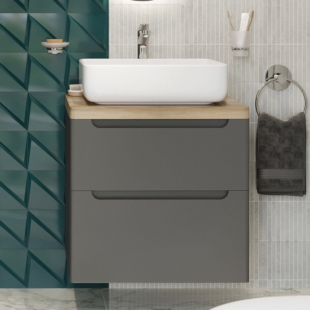 Тумба под раковину STWORKI Берген 60 — это подвесная конструкция с габаритами 59,5x51,5x56 см, выполненная из прочного МДФ с пленочным покрытием. для еще большей долговечности. Благодаря наличию механизма доводчика вы сможете наслаждаться плавным и бесшумным открыванием и закрыванием ящиков. Раковина STWORKI Soul 1 из фарфора имеет размеры 50x40 см и подходит для сифона диаметром 3.2 см, а столешница из массива бука светлого цвета с одним отверстием под смеситель добавляет элегантный штрих.