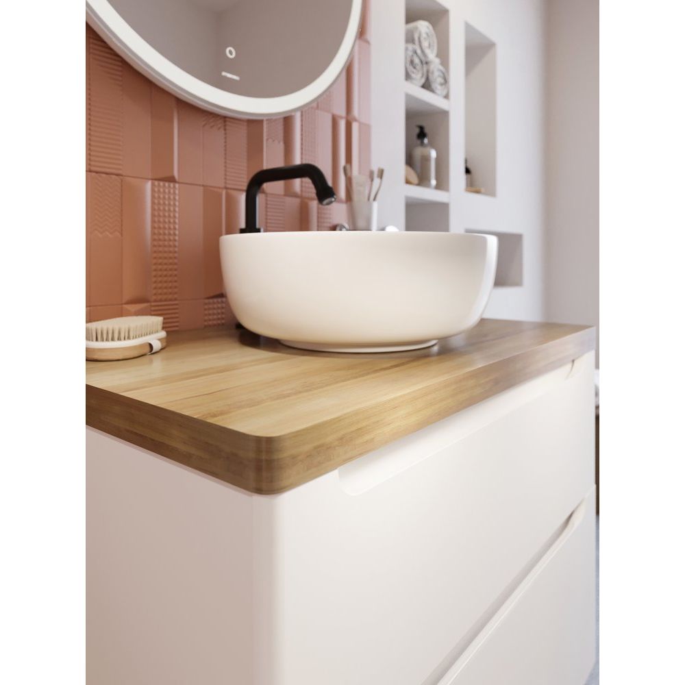 - Столешница STWORKI Берген 80: размеры 80x52x4 см, выполнена из массива бука, светлое дерево, с отверстием под смеситель.