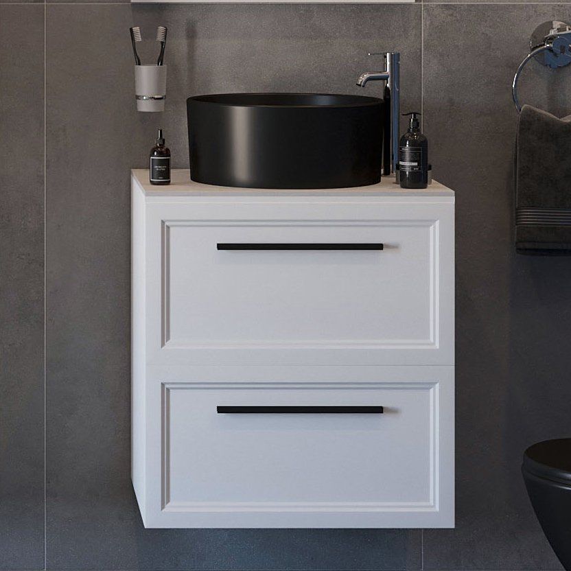 Погрузитесь в утончённую атмосферу вашей ванной комнаты с тумбой STWORKI Эстерсунд 60 в белоснежном матовом исполнении. Комбинация плавных линий и благородных материалов превращает эту мебель в произведение искусства, сочетающее в себе стиль и функциональность. Просторная столешница из керамогранита бежевого цвета и изысканная раковина BOCCHI Vessel в черном матовом цвете создают гармоничное и современное решение для вашей ванной.