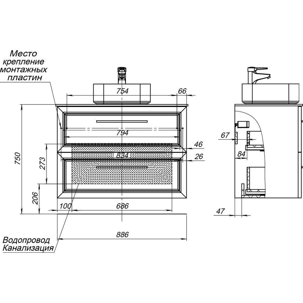 Мебель поставляется в собранном виде, что упрощает процесс установки. Обращайте внимание на конструктивные особенности тумбы при выборе сифона, подбирайте его индивидуально. Столешница не имеет отверстий для смесителя, позволяя вам выбрать оптимальное место монтажа. Обратите внимание, что донный клапан для раковины необходимо приобрести отдельно.