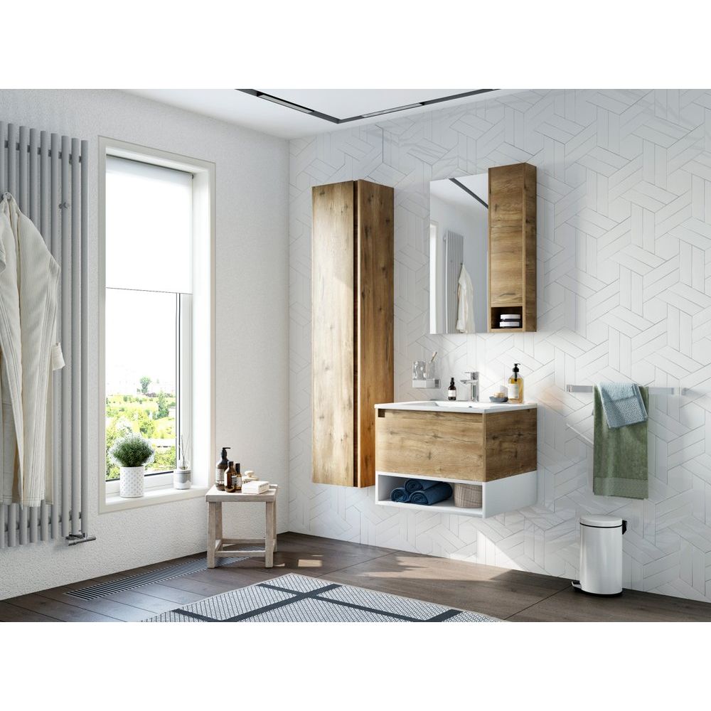 Ищете идеальный баланс между эстетикой и функциональностью? Тумба с раковиной STWORKI Карлстад 60 дуб рустикальный с белой полкой — оптимальный выбор для вашей ванной комнаты. Эта стильная и современная модель создаст уютную атмосферу, обладая при этом отличными эксплуатационными характеристиками. Дизайн в оттенке дуба и акцентный белый цвет полки добавят интерьеру уют и свет. Подвесная конструкция позволит сэкономить пространство и визуально сделает комнату просторнее.
