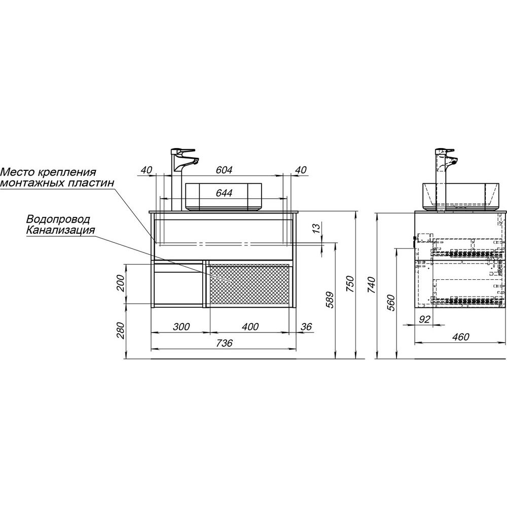 Мебель поставляется в собранном виде, что ускоряет и упрощает процесс установки. Важно правильно выбрать сифон, принимая во внимание конструкцию тумбы и раковины, чтобы обеспечить оптимальную функциональность. Столешница с отверстием для установки раковины, но без отверстий под смеситель, что дает возможность индивидуальной регуляции установки. Благодаря этим особенностям, данный комплект подходит для современных ванных комнат, требующих сочетания стиля и высокой практичности.