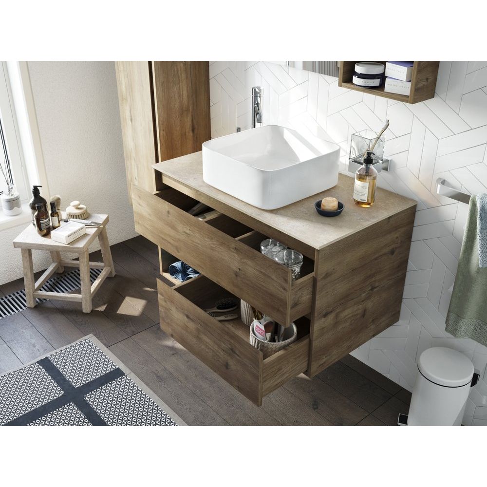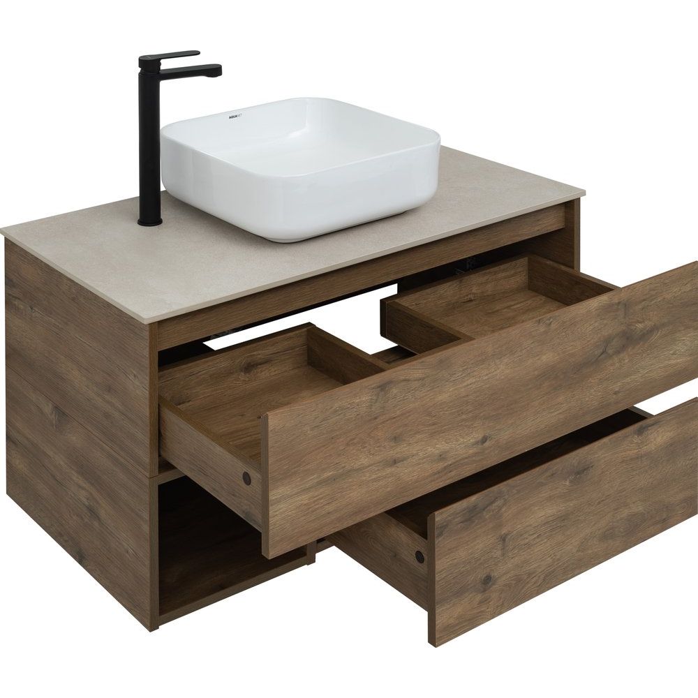 Тумба под раковину «Карлстад 90» от известного бренда STWORKI — это стильное и практичное решение для вашей ванной комнаты. Эта подвесная конструкция идеальна для легкой уборки и создаёт атмосферу уюта и роскоши. Изделие выполнено из влагостойкой ЛДСП, а столешница из прочного керамогранита. Общий декор в стиле «дуб рустикальный» придаёт интерьерам натуральный и гармоничный облик. Тумба оборудована открытой полкой и двумя ящиками, которые закрываются плавно и бесшумно благодаря направляющим Hettich Quadro Silent System.