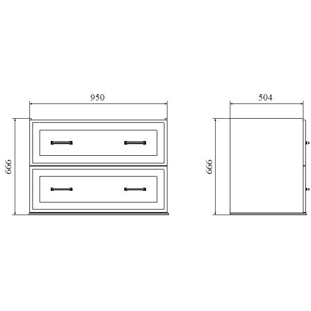 - Тумба: Габариты 95x50,4x66,6 см. Изготовлена из ЛДСП с эмалевой и ламинатной отделкой. Подвесная конструкция и ящики оснащены механизмами доводчиков. Производство Россия, гарантия — 2 года.
