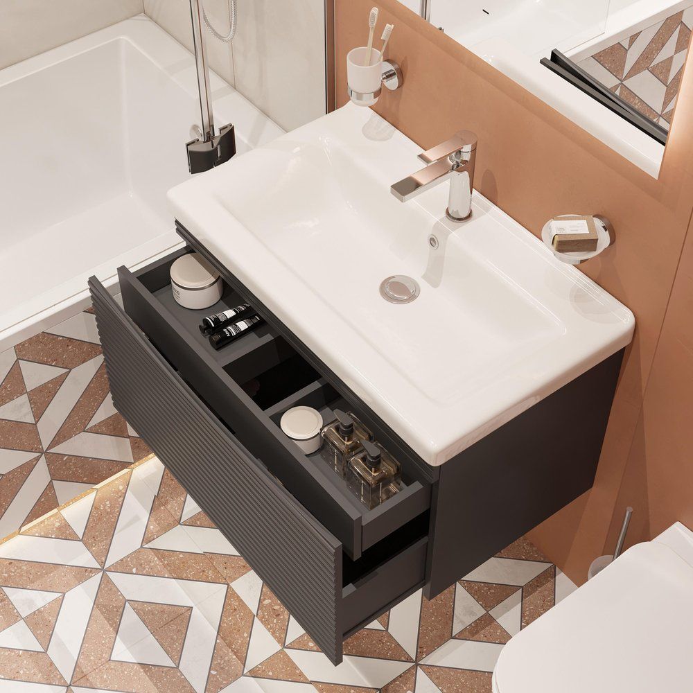 Тумба с раковиной STWORKI Хедмарк 80 в благородном оттенке антрацит — это не просто элемент меблировки вашей ванной комнаты, но и удобный и практичный выбор для современного интерьера. Элегантное сочетание строгих линий и функциональностью делает ее идеальным решением для взыскательных покупателей, ценящих как эстетику, так и надежность. Эта модель от известного бренда STWORKI станет неотъемлемой частью вашего утреннего ритуала, предлагая комфорт и удобство в каждодневном использовании.